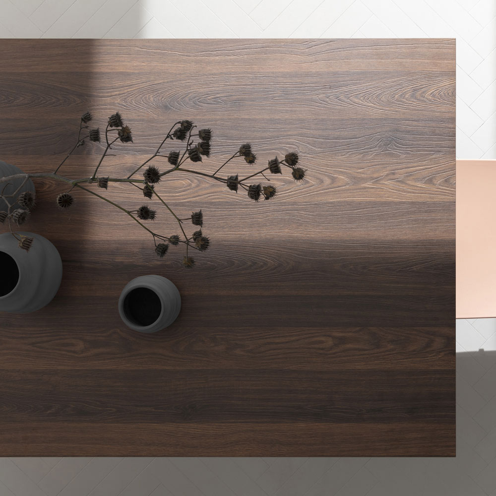 plateau extensible en hpl disponible en différentes finitions et en deux tailles différentes. Son esthétique se concentre entièrement sur un