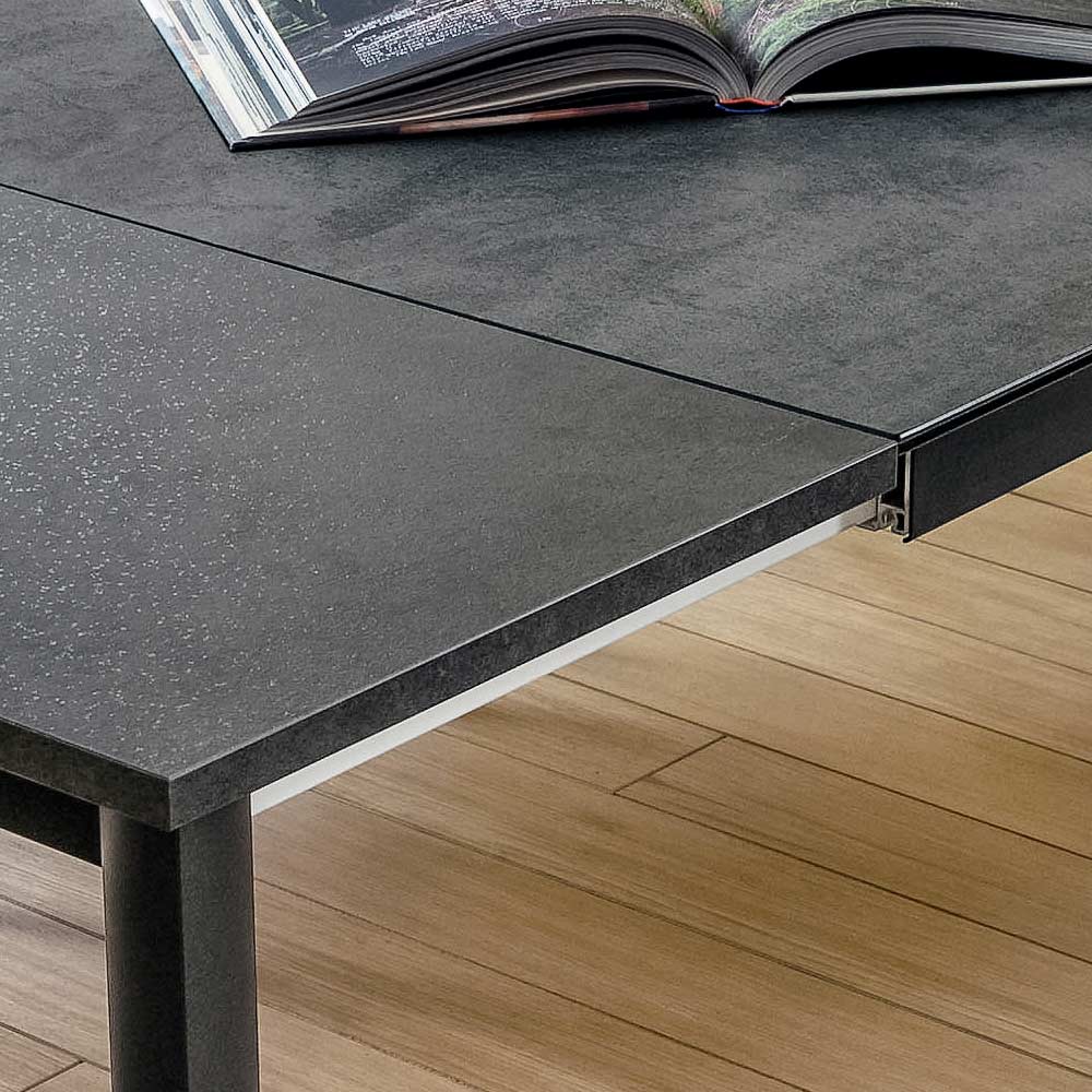 plateau extensible qui peut atteindre une longueur de 240 cm, ce qui en fait l'idée parfaite pour ceux qui aiment organiser des déjeuners et des dîners entre amis et qui ont besoin d'une solution aussi fonctionnelle que moderne qui puisse créer un merveilleux harmonie avec le mobilier environnant . Pour souligner sa splendide esthétique, le plateau en laminam, une