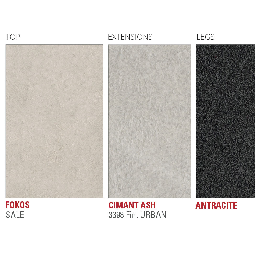 NB : le plateau et le piètement sont disponibles dans une large gamme de finitions différentes. La continuité du grain entre le plateau et la rallonge n'est pas garantie