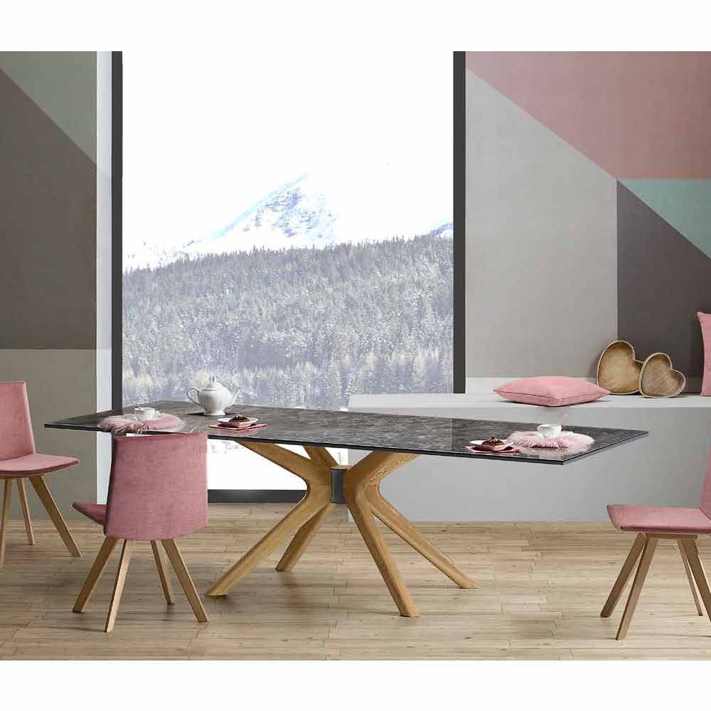 Table à manger moderne extensible jusqu'à 260 cm avec plateau en grès, article Made in Italy de haute qualité.