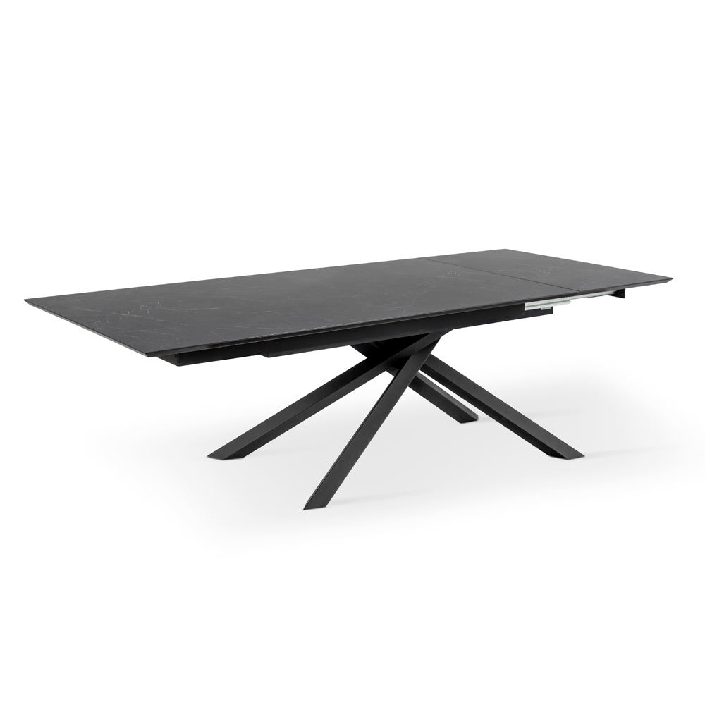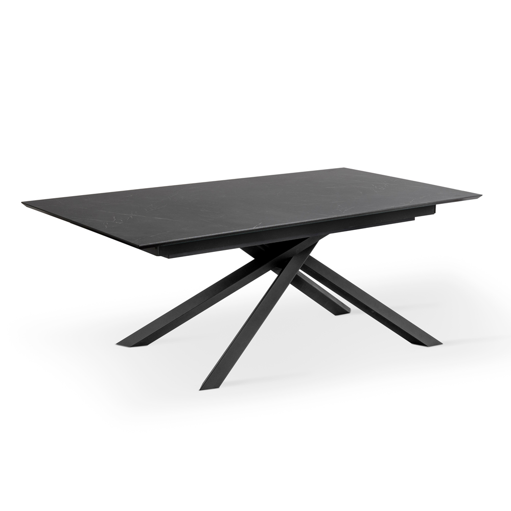 Table de salon extensible avec plateau HPL sur MDF , pieds en aluminium peint blanc ou noiret extensions internes en HPL sur MDF.