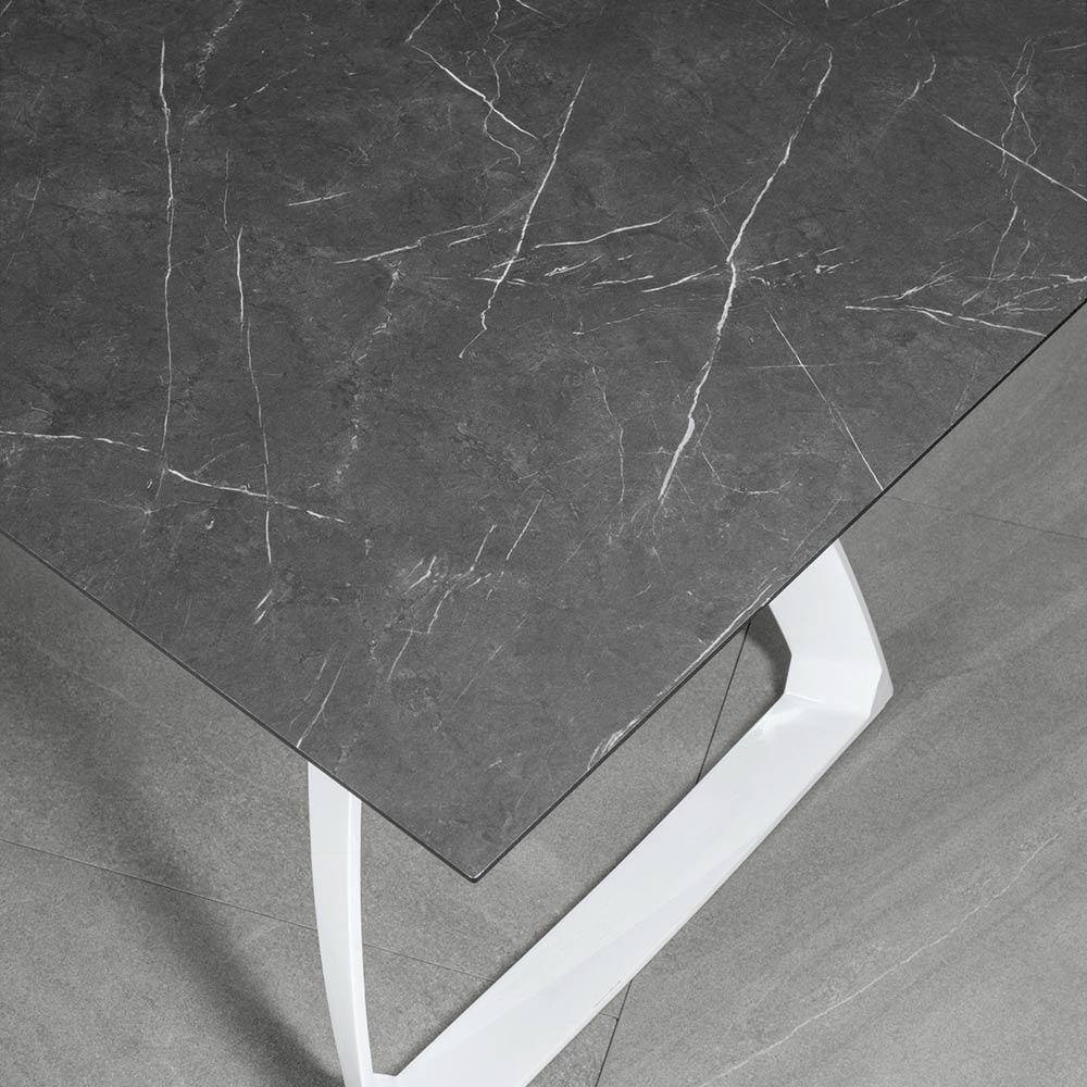 Plateau HPL effet marbre noir, piètement blanc