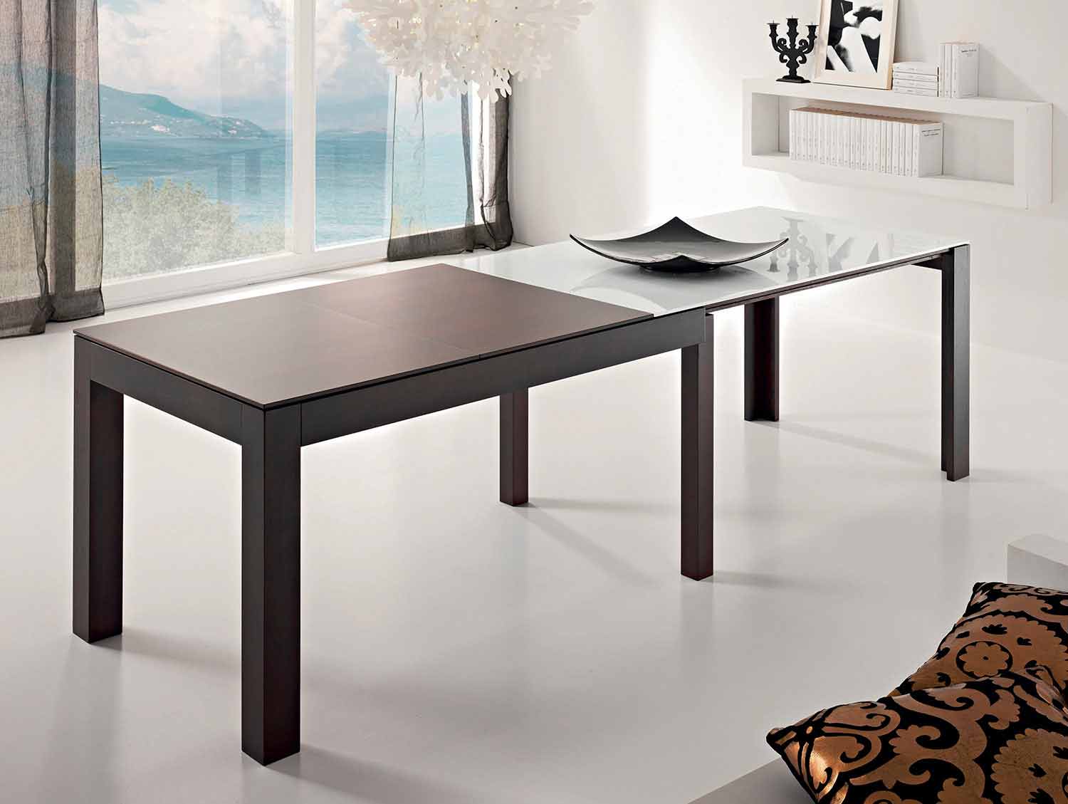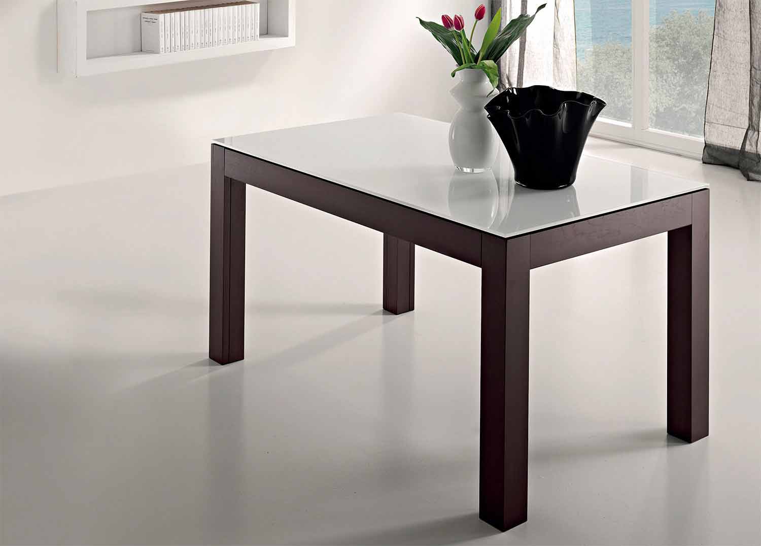 Étant un produit fait à la main, il est possible de le personnaliser en choisissant entre les différentes finitions en verre pour le dessus et les différentes finitions en bois pour la base et les extensions. Pour plus d'informations contactez-nous via le formulaire approprié "Demande d'informations".