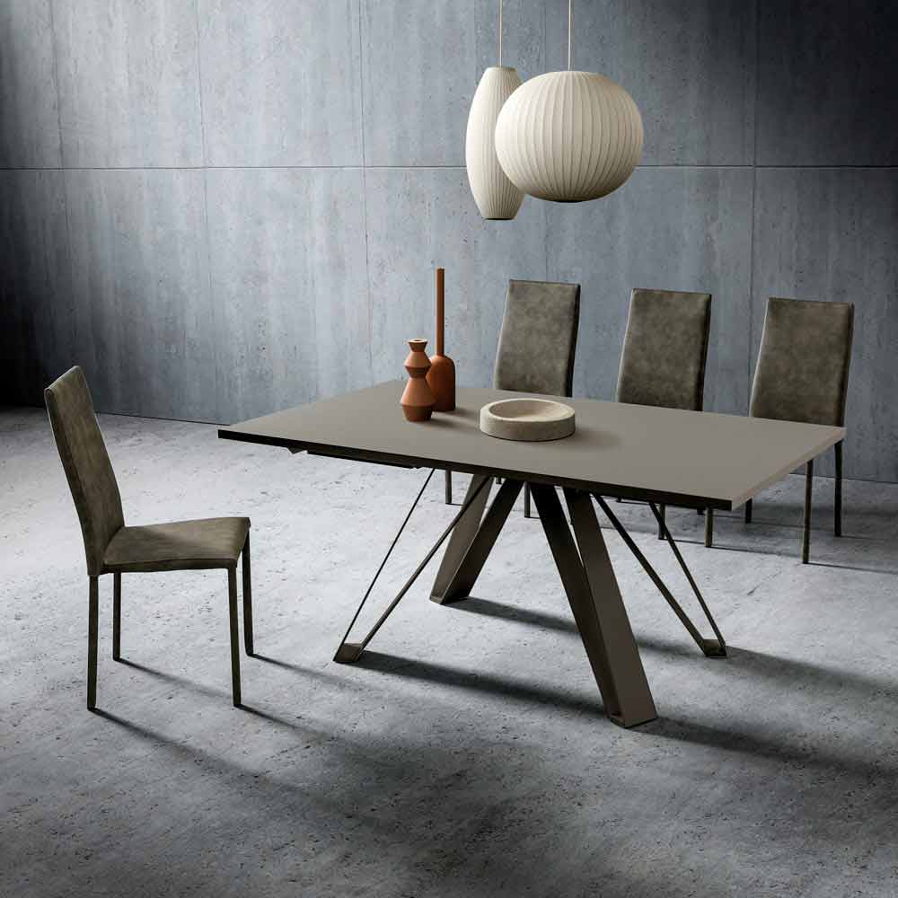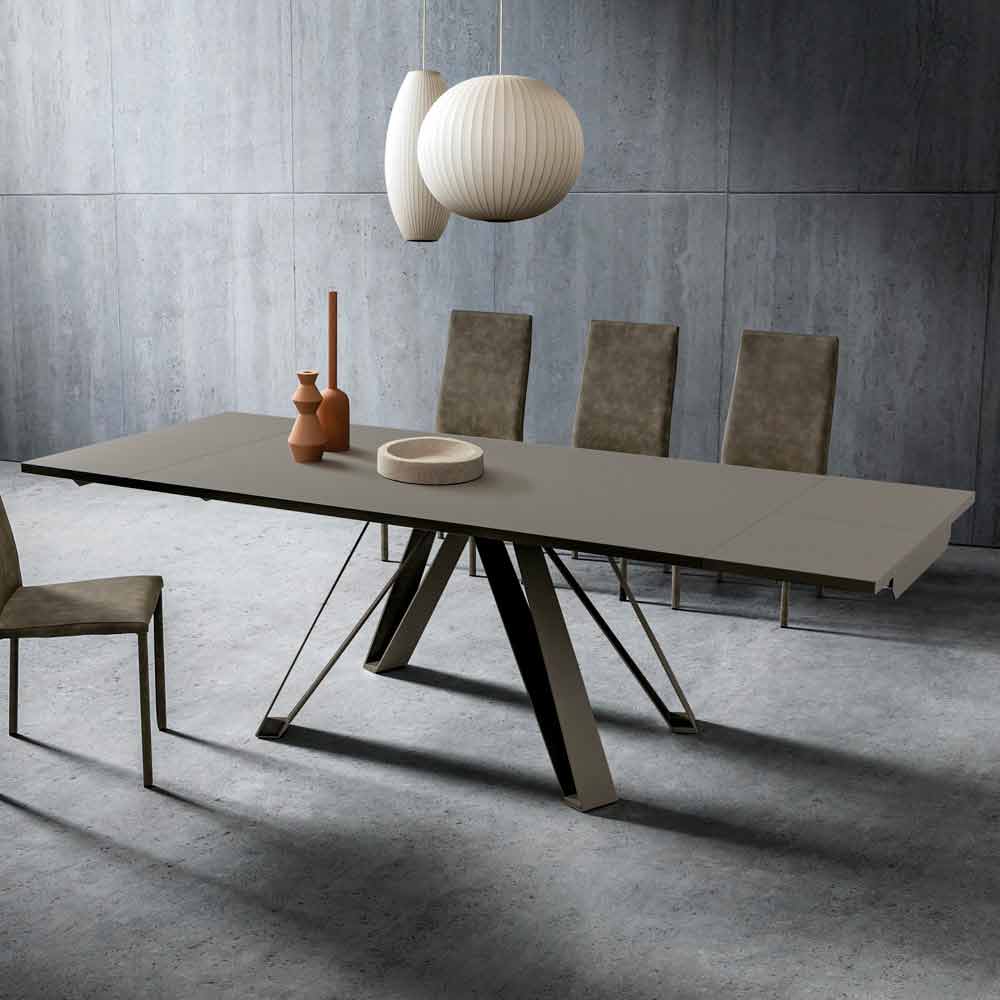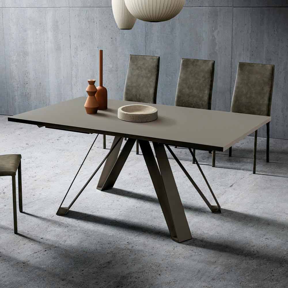 Table de cuisine extensible en fenix et métal peint, luxe Made in Italy.
