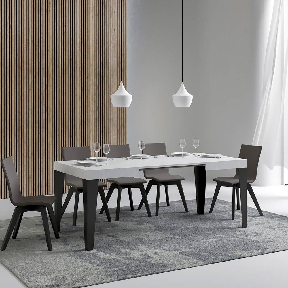Table de salle à manger extensible composée d'un plateau en bois de microparticules plié et de pieds en fer peint en anthracite,entièrement Fabriqué en Italie. .
