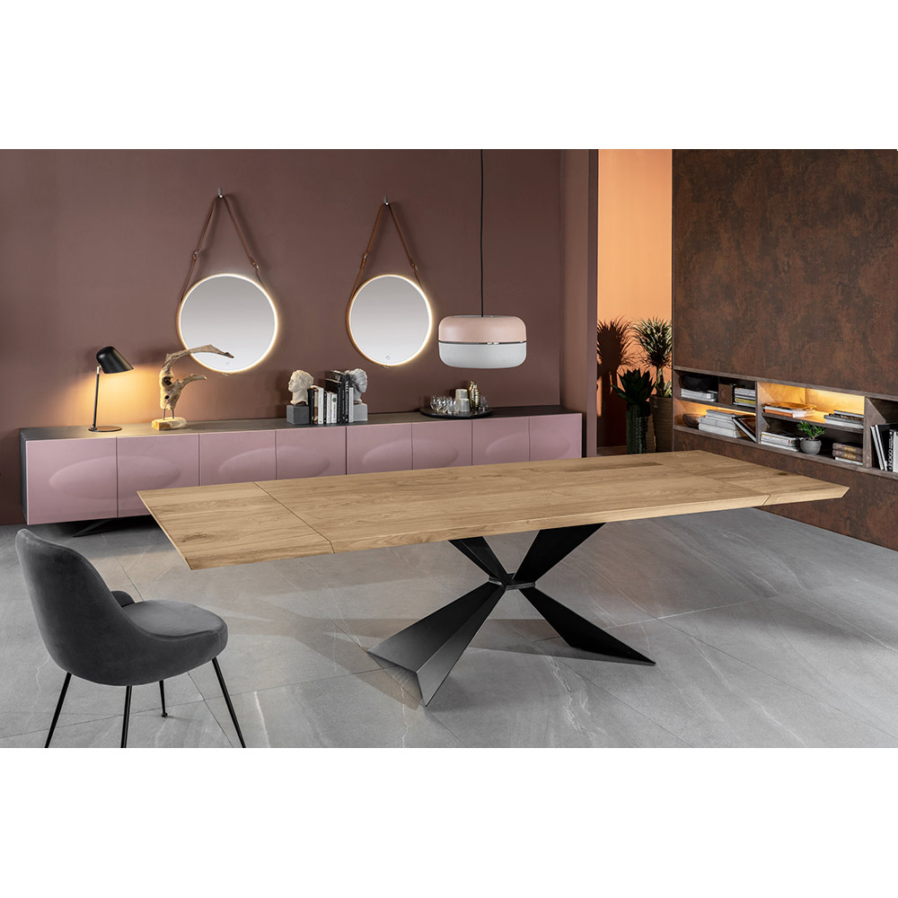 Table Extensible jusqu'à 300 cm avec Base en Métal et Plateau en Chêne - Marine