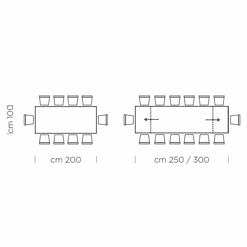 rallonges de 40/50 cm chacune , permet d'allonger la longueur jusqu'à un maximum de 300 cm, pouvant accueillir jusqu'à 14 personnes, se révélant être un meuble. solution particulièrement adaptée à ceux qui aiment recevoir chez eux pour des déjeuners et des dîners entre amis.