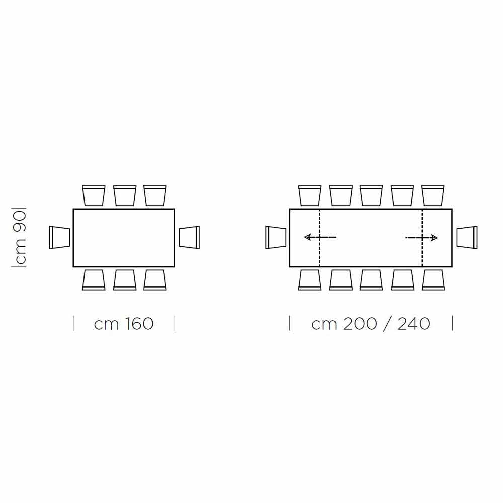 - L 160/240 x P 90 x H 75,5 12 places (2 rallonges de 40 cm)