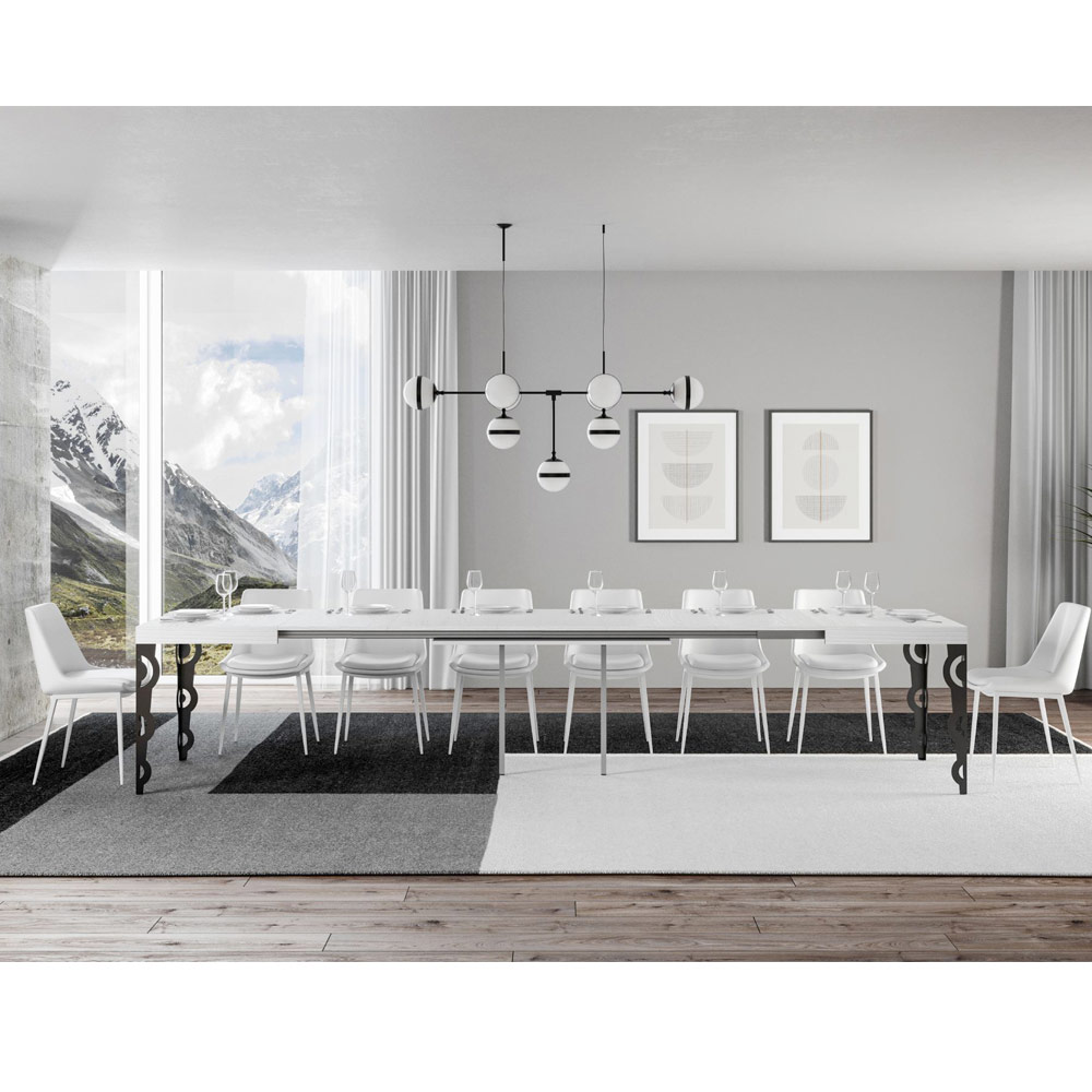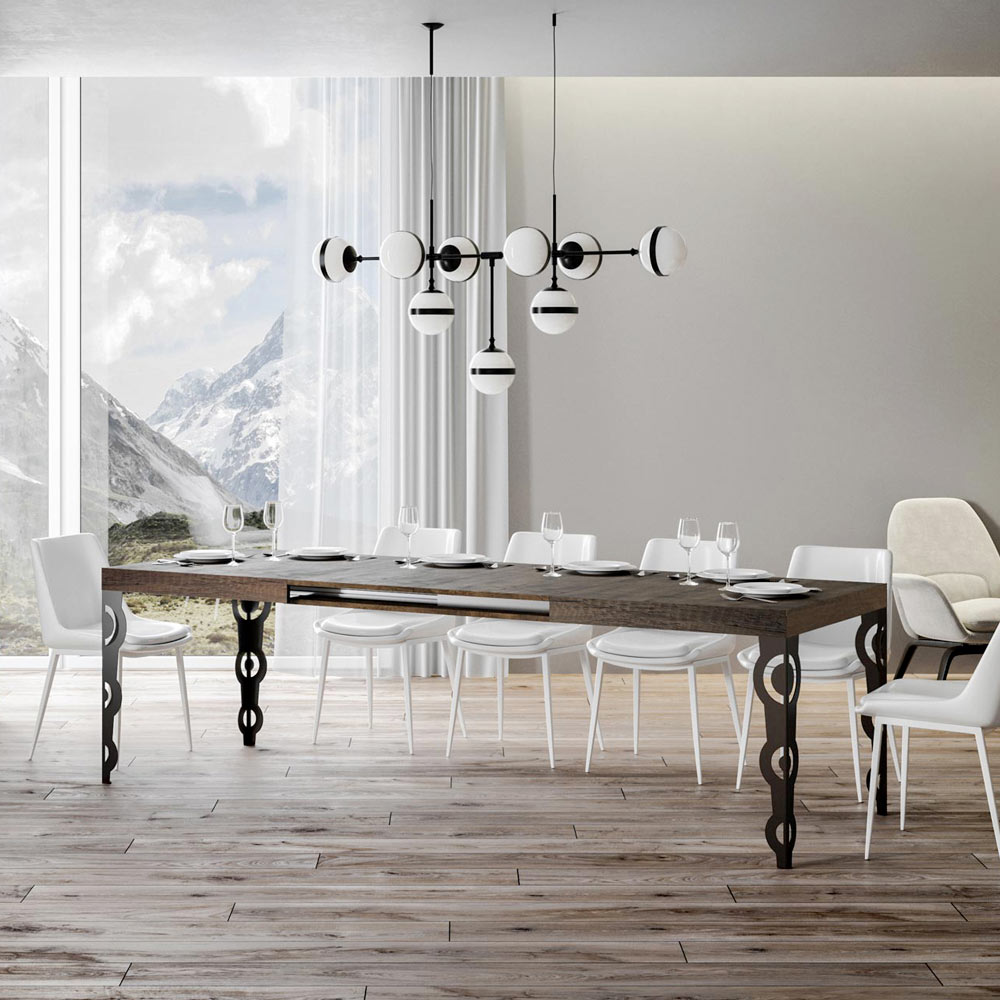 Sa capacité à s'étirer est un hommage à la polyvalence nécessaire dans la vie de tous les jours, vous permettant de passer d'un petit déjeuner intime à une grande table de fête familiale d'un simple geste. Réalisée avec des matériaux de haute qualité et selon les standards du Made in Italy, cette table est une promesse de durabilité et de solidité, un investissement dans la beauté qui dure.