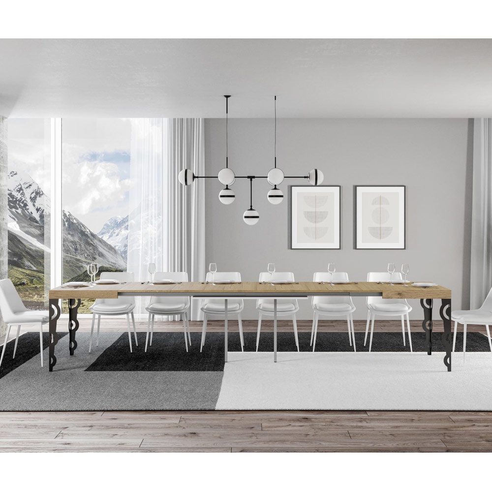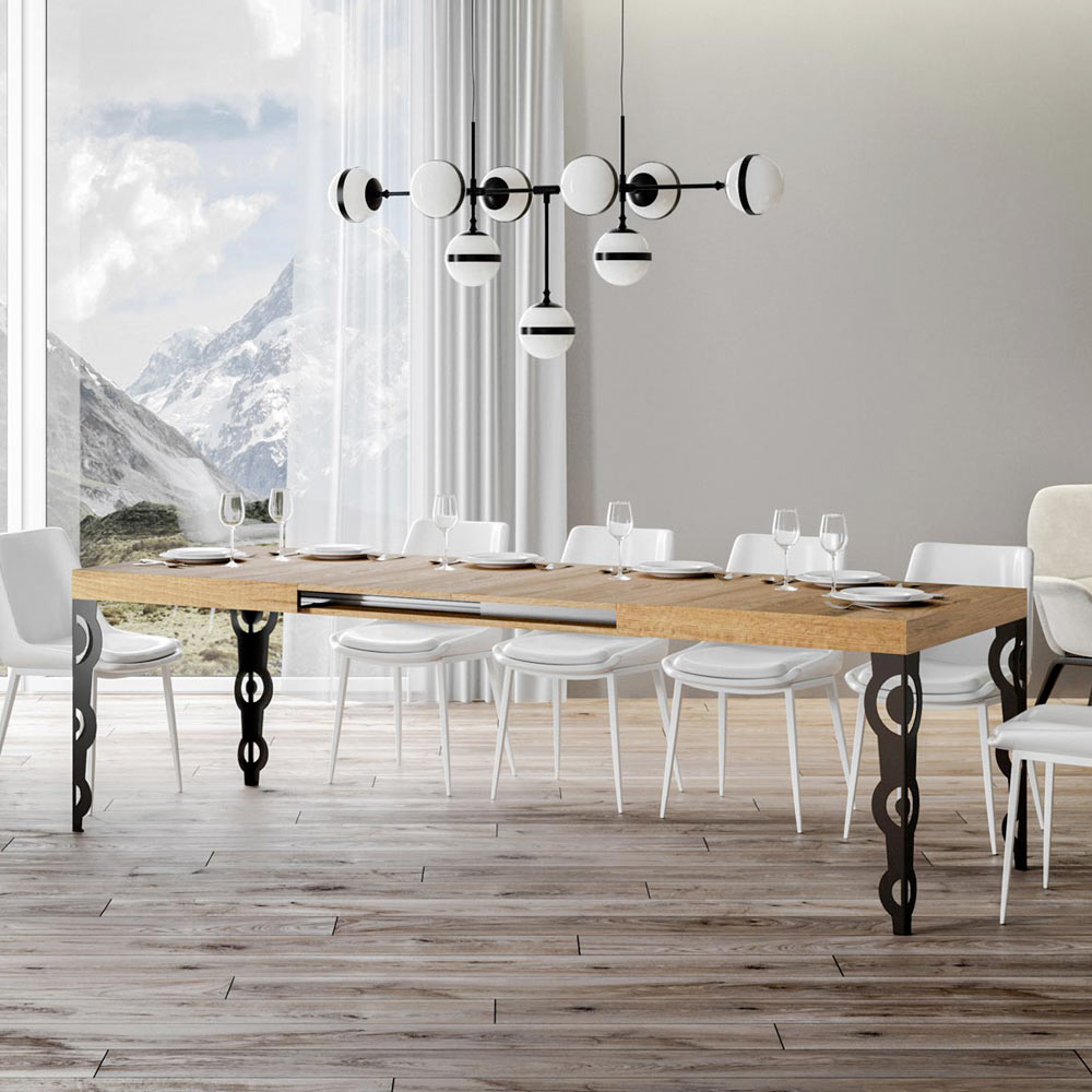 Cette table extensible allie le charme ancien du design ornemental à la fonctionnalité moderne. Les pieds en fer carvés présentent des motifs baroques complexes, un détail qui ne manquera pas d'attirer l'attention.
