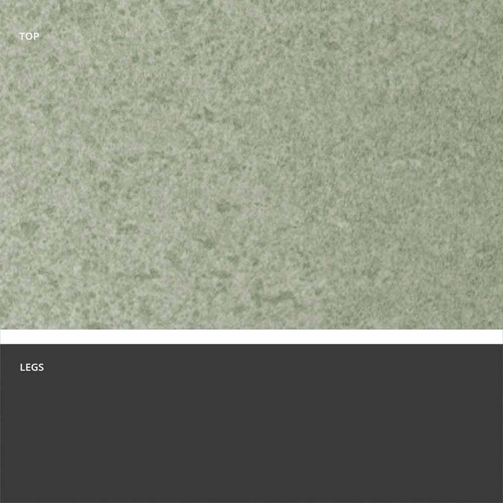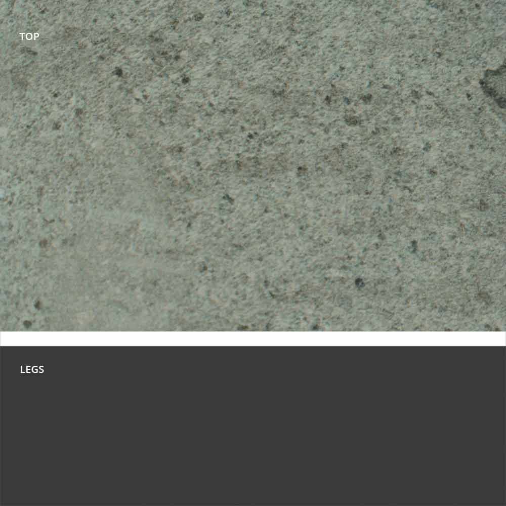 - piètement en métal gris noir (RAL 7021) et plateau en grès finition basalte de sable;