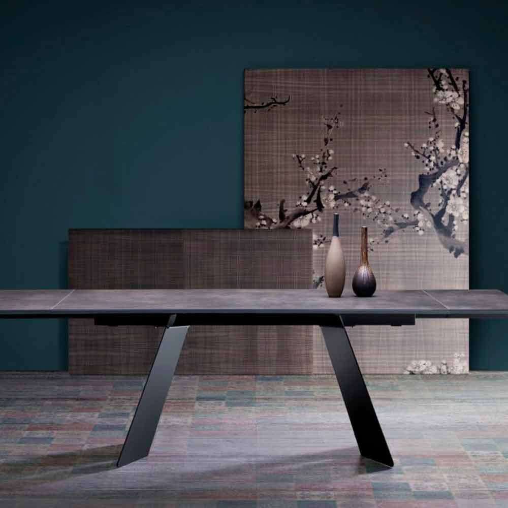Table extensible moderne avec plateau en grès made in Italy, Erve