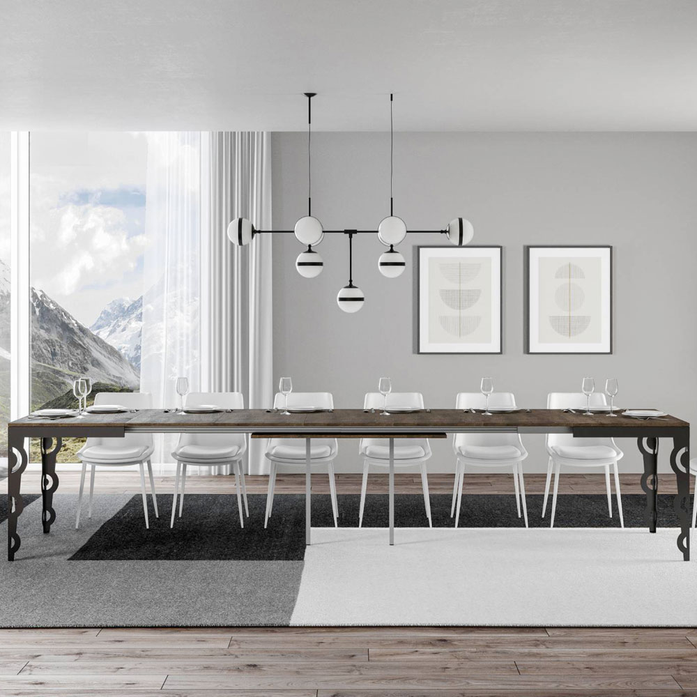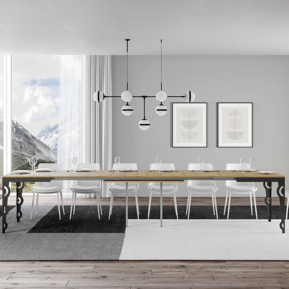 Le plateau en bois est un classique qui ne se démode jamais, offrant une surface durable prête à accueillir tout type d'événement, qu'il s'agisse d'un dîner intime ou d'un grand banquet. La possibilité d'allonger la table la rend incroyablement polyvalente ; elle s'adapte facilement aux petits comme aux grands espaces, ce qui la rend idéale pour tout type de maison.