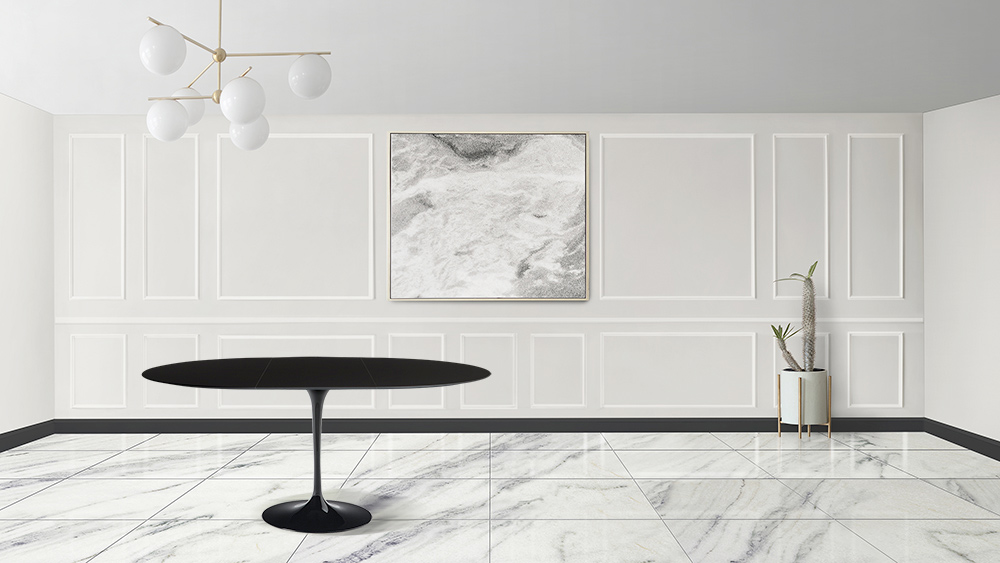 Table de salle à manger extensible jusqu'à 187 cm avec plateau en stratifié liquide noir et base en aluminium poli noir entièrement Made in Italy . Ce meuble répond aux besoins de fonctionnalité et d'adaptabilité de tout environnement de vie et de cuisine. Raffiné et aux lignes simples, il peut être inséré dans tous les ameublements pour mieux compléter chaque pièce. La possibilité d'extension en fait un élément unique qui répond à la nécessité d'avoir plus de convives, grâce aussi à la forme de la base qui favorise l'insertion de plusieurs chaises. Cette table est l'idée parfaite pour avoir quelque chose d'original et élégant mais en même temps utile pour toutes les occasions et événements.