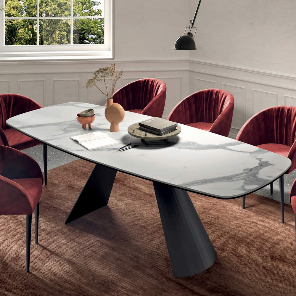 Table Fixe avec Base en Acier Noir et Plateau en Stratifié Fabriquée en Italie - Verres