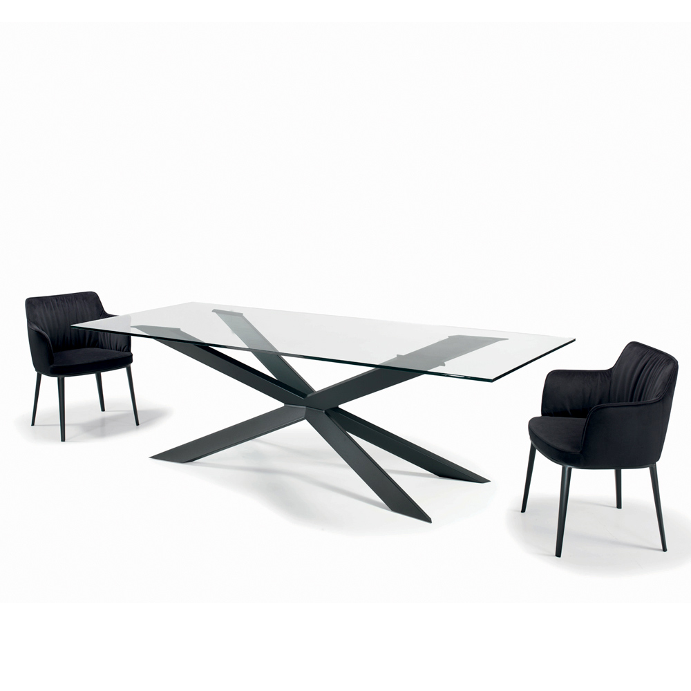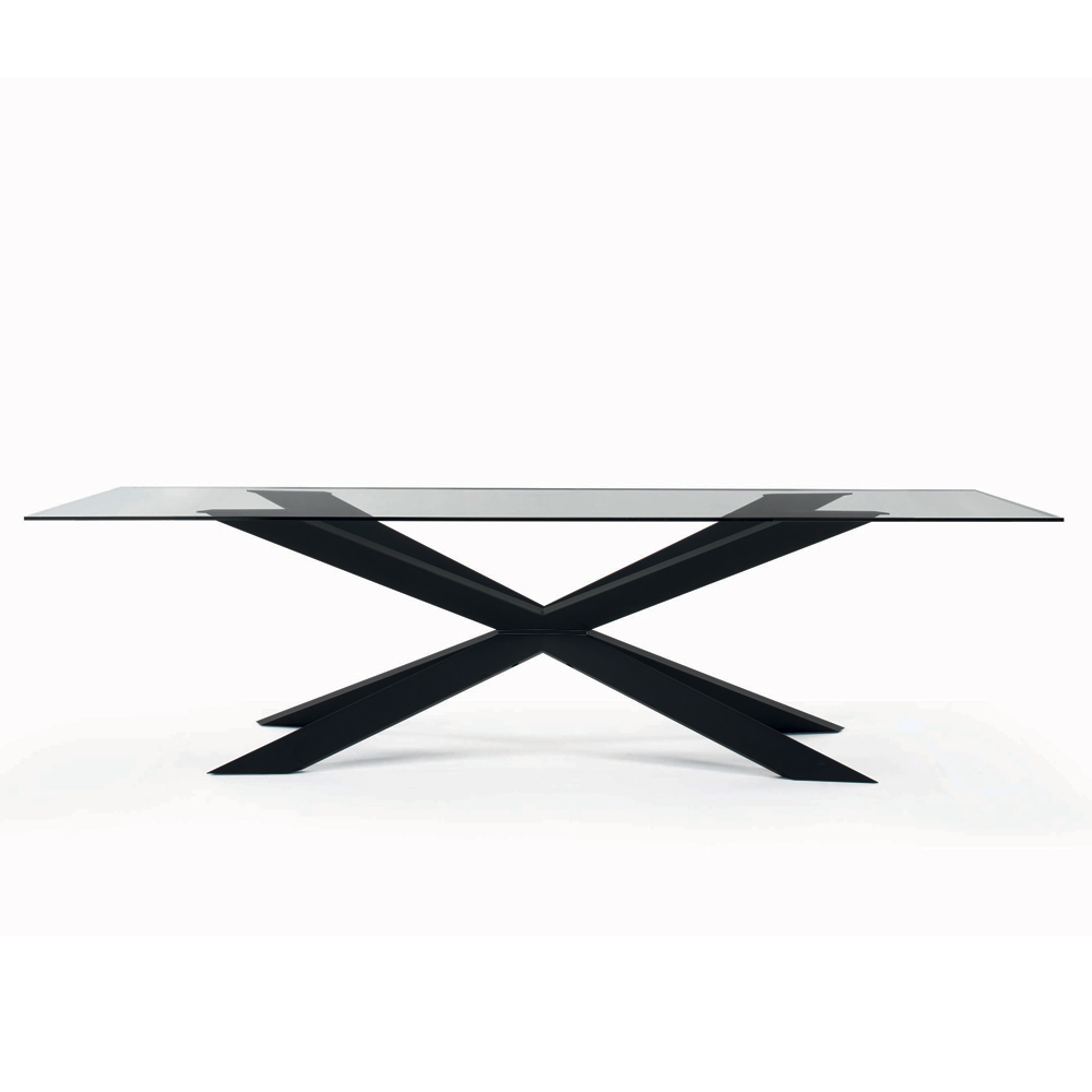 Table Fixe avec Bord Inversé en Verre Extra-clair et Acier Fabriquée en Italie - Grotta