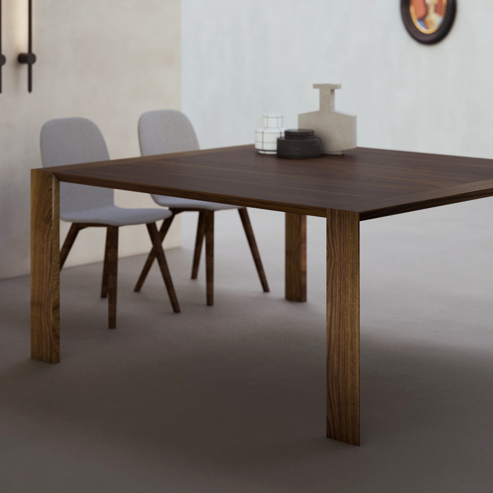 Table Fixe avec Plateau Biseauté en Noyer Canaletto Fabriquée en Italie - Caspian