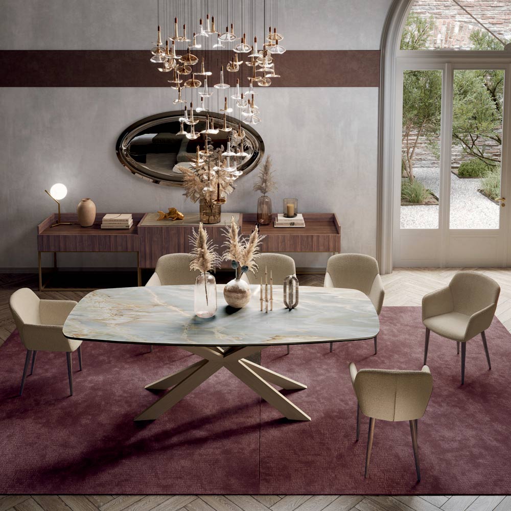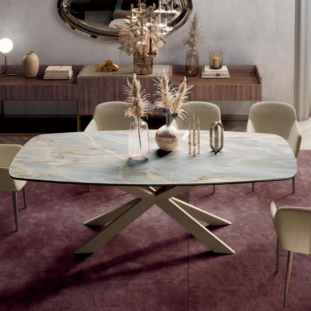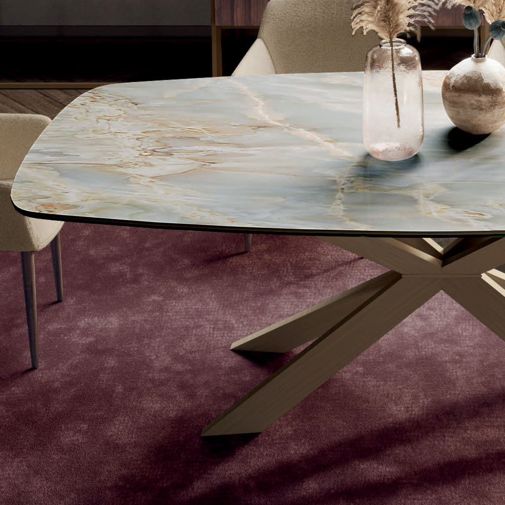 Table Fixe avec Plateau en Céramique Onyx Argent Poli Fabriquée en Italie - Grotta