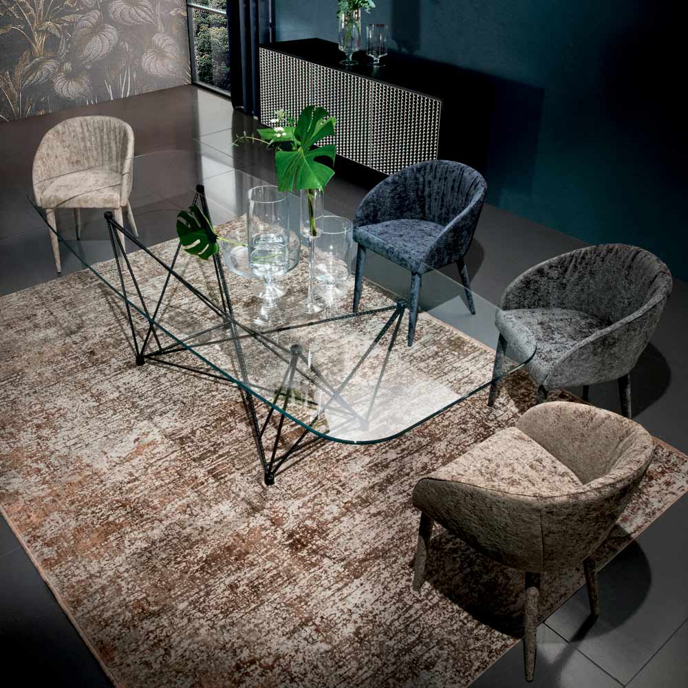 Table fixe en acier et verre Made in Italy