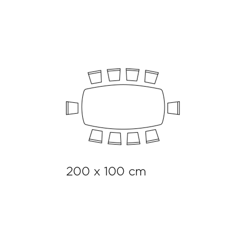 longueur 200 cm x profondeur 100 cm x hauteur 73 cm (épaisseur plateau 12 mm)