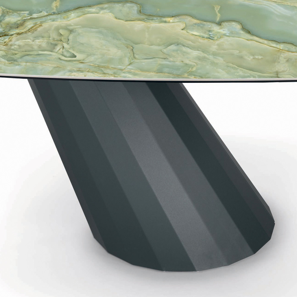 Table de salon fixe en forme de tonneau avec plateau en céramique , bord biseauté à 45° , base en acier laqué graphite et pieds réglables Fabriqué en Italie. Ce produit dégage une grande élégance et devient le protagoniste de n'importe quel environnement . Le raffinement de la forme de la base combiné à la finition du plateau que vous choisissez crée une table unique, avec un grand impact visuel qui meuble les environnements quotidiens et contract avec goût et raffinement . Le choix de matériaux de première qualité et l' attention portée à la création de chaque détail créent un produit d' excellente qualité Made in Italy.