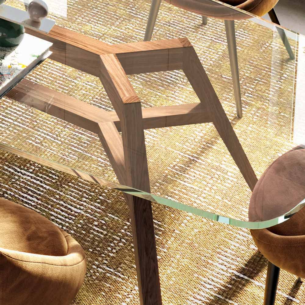 Table Fixe en Verre Extra-clair et Frêne Fabriquée en Italie - Nord