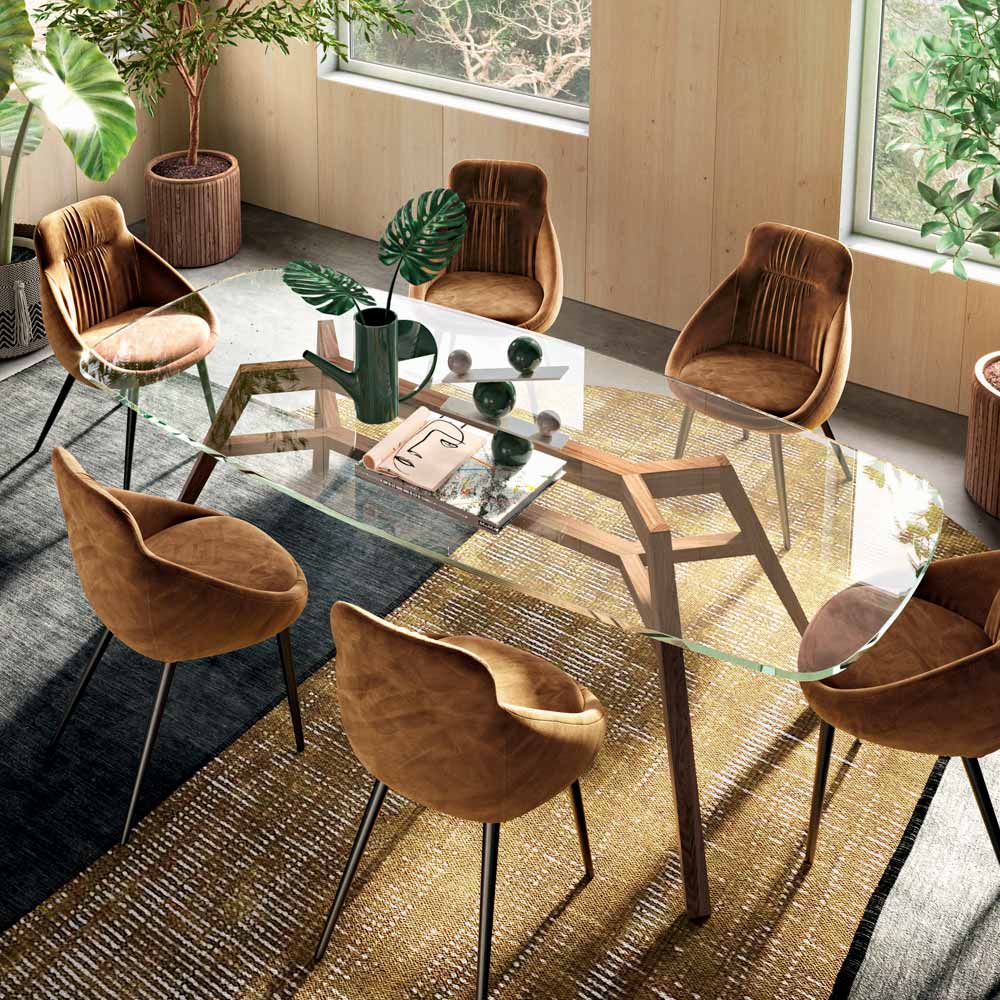 Table de salon fixe de forme tonneau avec plateau en verre , bord biseauté à 30° , piètement en frêne finition noyer canaletto . Ce produit au style moderne a pour objectif premier de pouvoir être utilisé au quotidien sans sacrifier le design. La chaîne de produits, de la conception à la production, jusqu'au contrôle de qualité, est entièrement réalisée en Italie , afin de garantir et de préserver la caractéristique typique du « savoir-faire » italien et l'importance du typique Made in Italy.