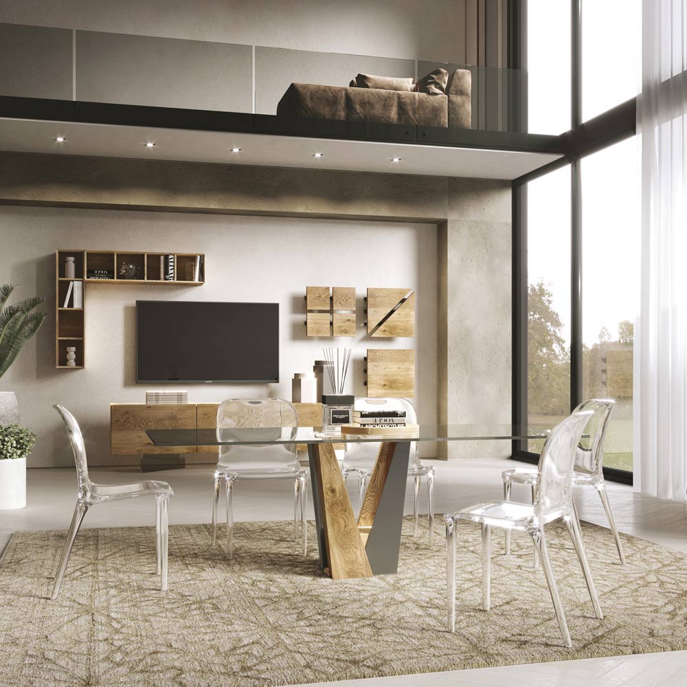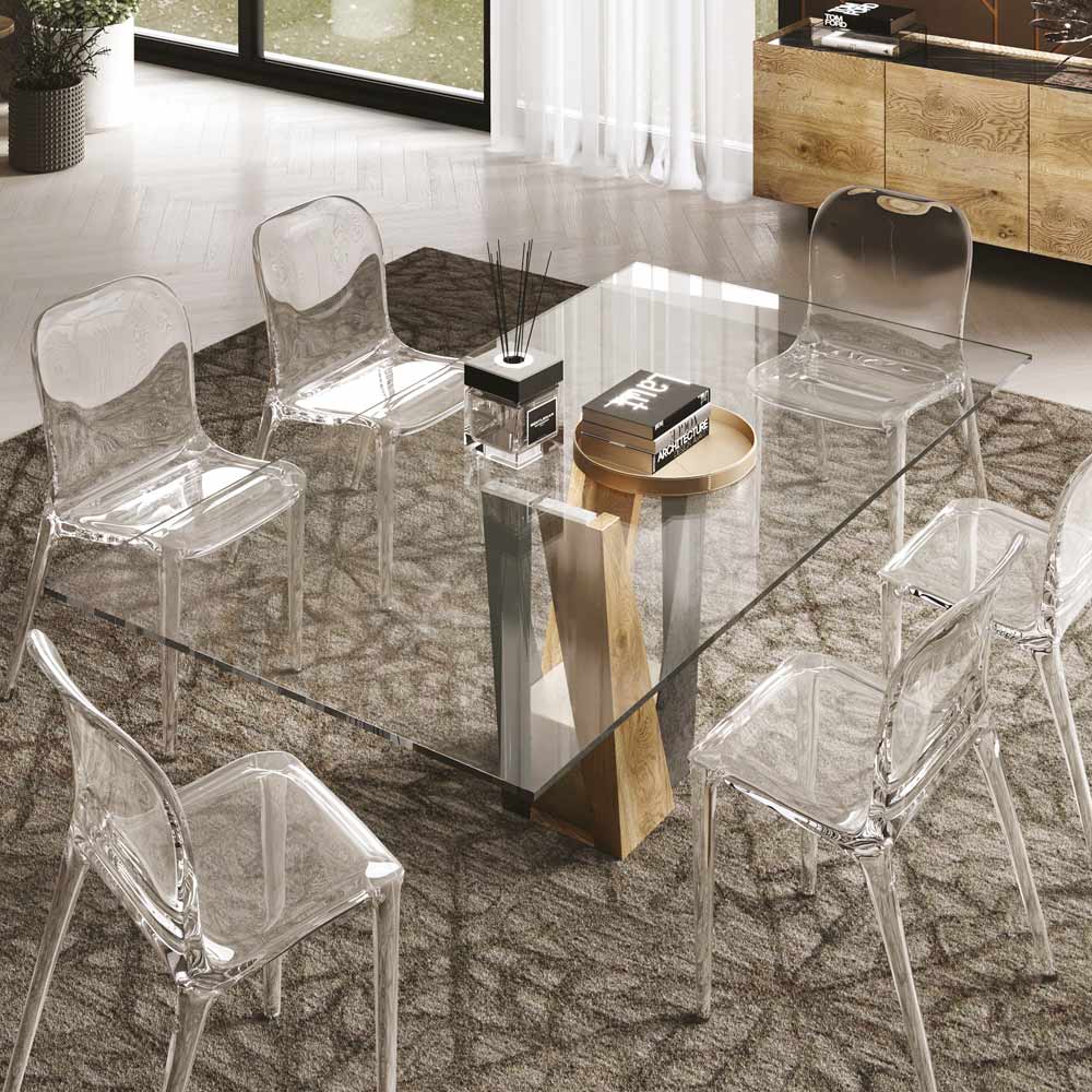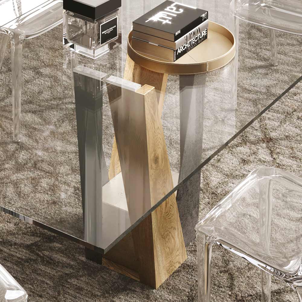 Table Living en Cristal avec Base en Bois et Métal Made in Italy - Dementor