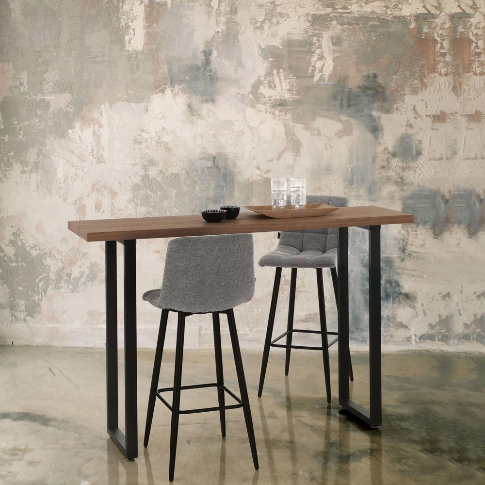 Table de bar avec plateau de 4 cm d'épaisseur en MDF recouvert de mélaminé finition chêne , pieds en acier peint noir mat de 5x3 cm et pied entièrement réglable. Ce produit est l'idée parfaite pour tous ceux qui souhaitent donner une touche de modernité et de fraîcheur à la pièce, qu'il s'agisse d'un salon, d'une cuisine ou d'un bar. Les matériaux choisis pour la construction sont de la plus haute qualité pour garantir au client une table non seulement belle à regarder mais aussi fonctionnelle et résistante , qui libère tout le savoir-faire artisanal de la table.