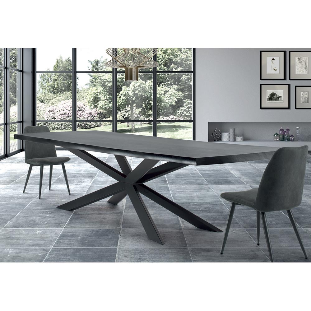 Grotta est une table à manger moderne au fort impact esthétique et pleine de fonctionnalités, parfaite pour meubler toutes vos pièces avec style et design. Fabriqué à la main en Italie avec des matériaux 100% Made in Italy. Doté d'un plateau en bois plaqué avec bord écorcé irrégulier et d'une base en acier noir. La base est ornée d'une frise de joints en acier noir.