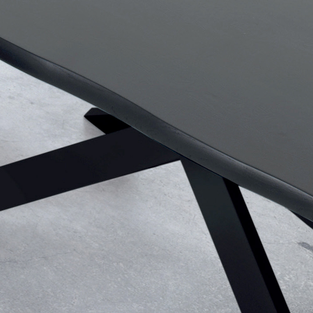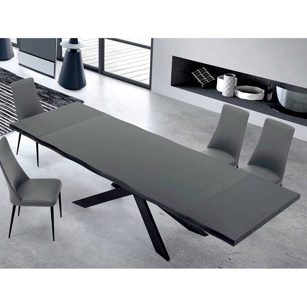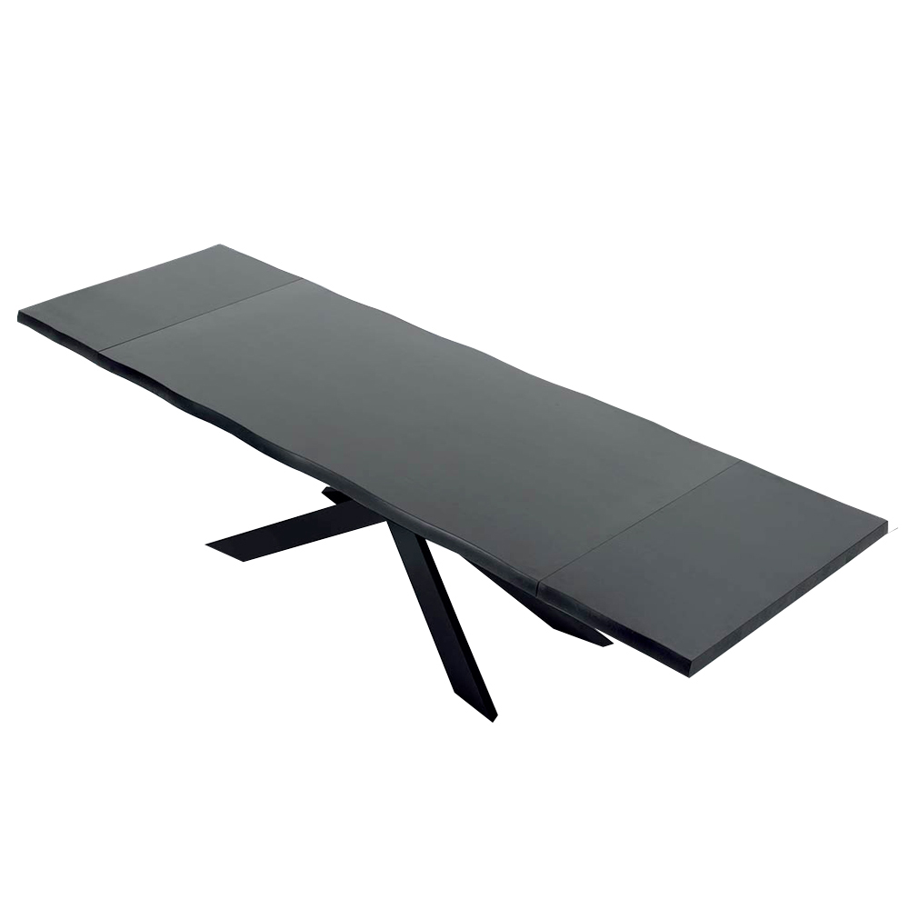 Table à manger extensible jusqu'à 300 cm en bois plaqué et piètement en acier noir, fabriquée en Italie.