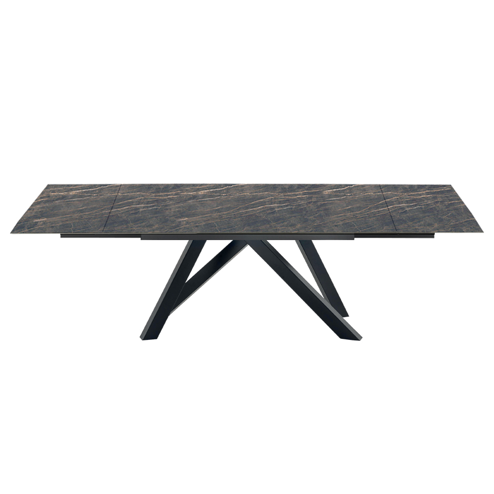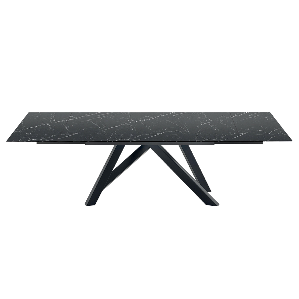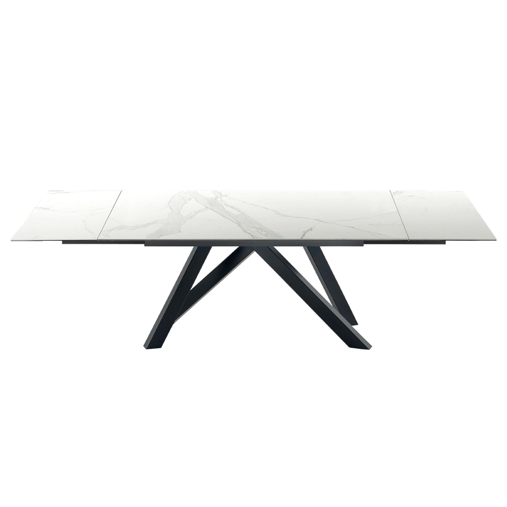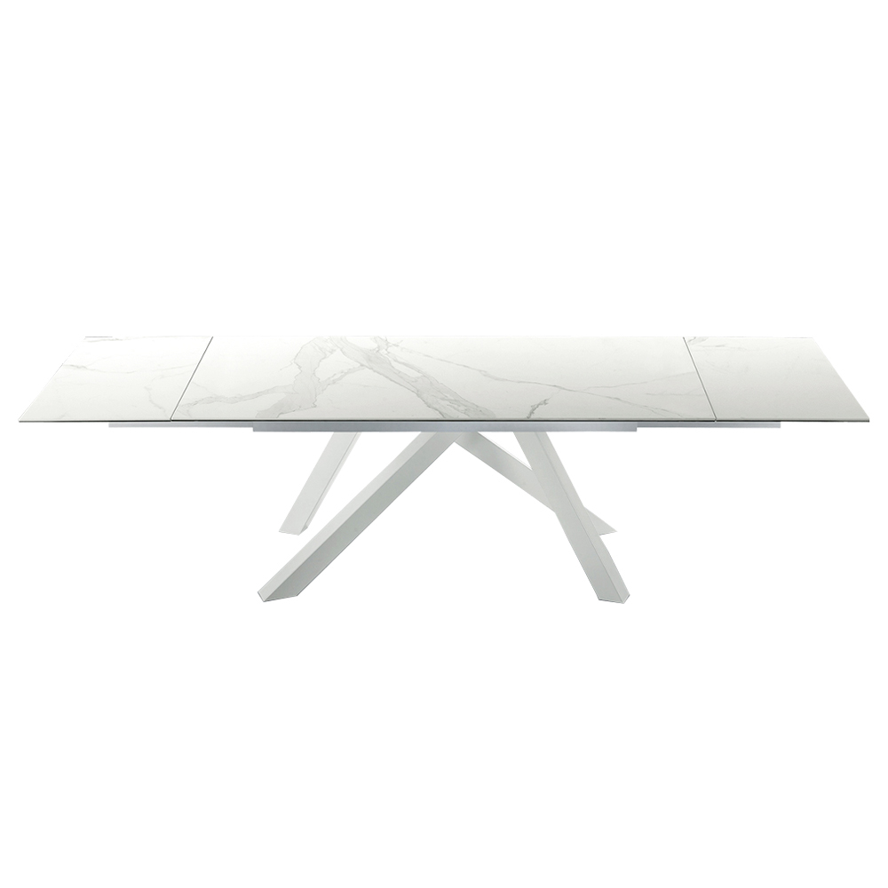 Table Laminam extensible jusqu'à 278 cm avec base en acier blanc ou graphite, produite en Italie.
