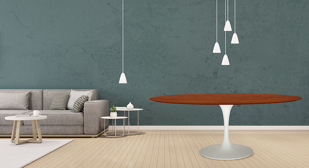Table Tulipe Eero Saarinen H 74 Ovale en chêne teinté cerisier Made in Italy - Ecarlate