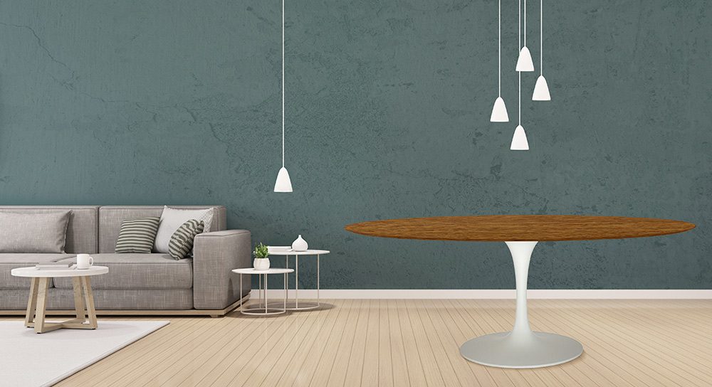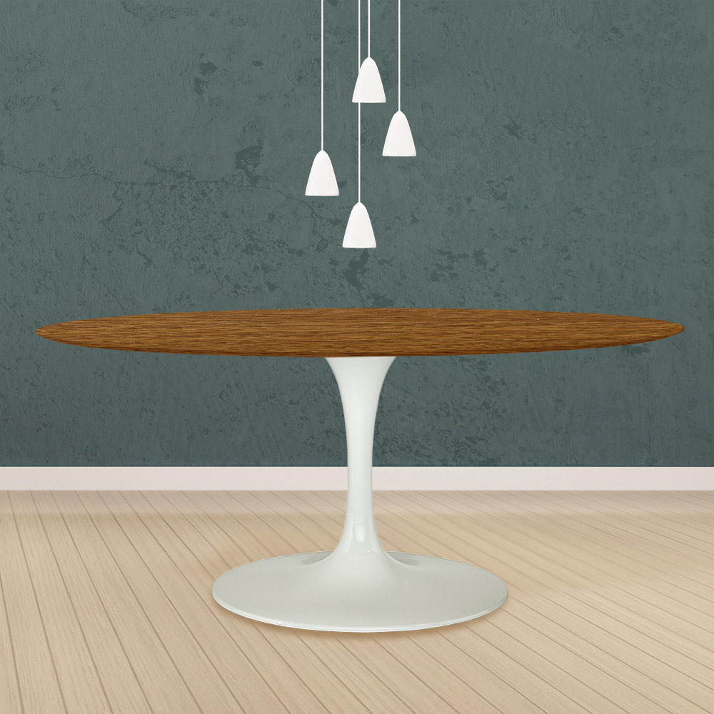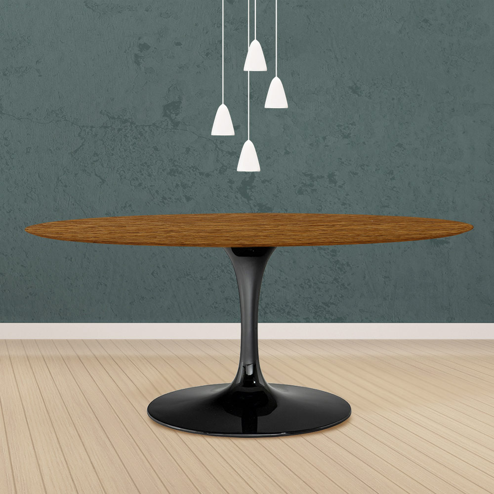 Table Tulipe Eero Saarinen H 74 Ovale en chêne teinté noyer clair Made in Italy - Ecarlate
