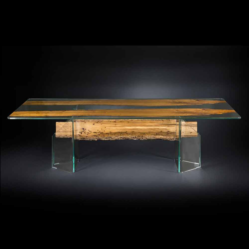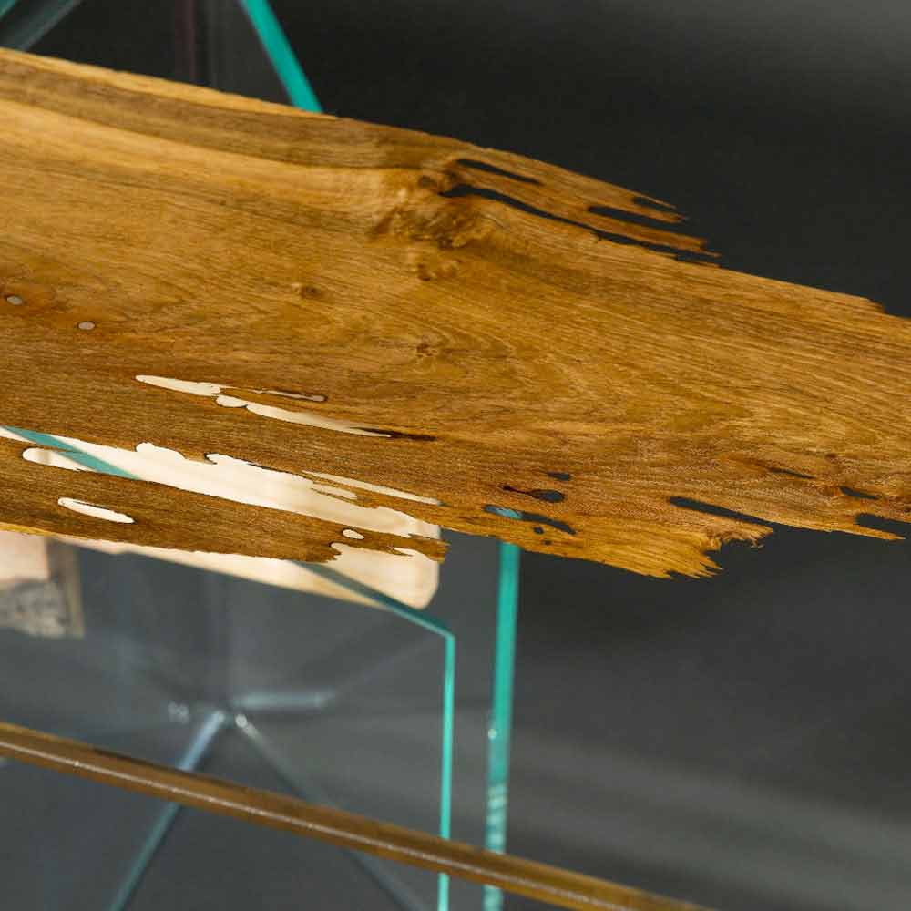 Table rectangulaire en bois de Briccola et verre de design Venezia, made in Italy.