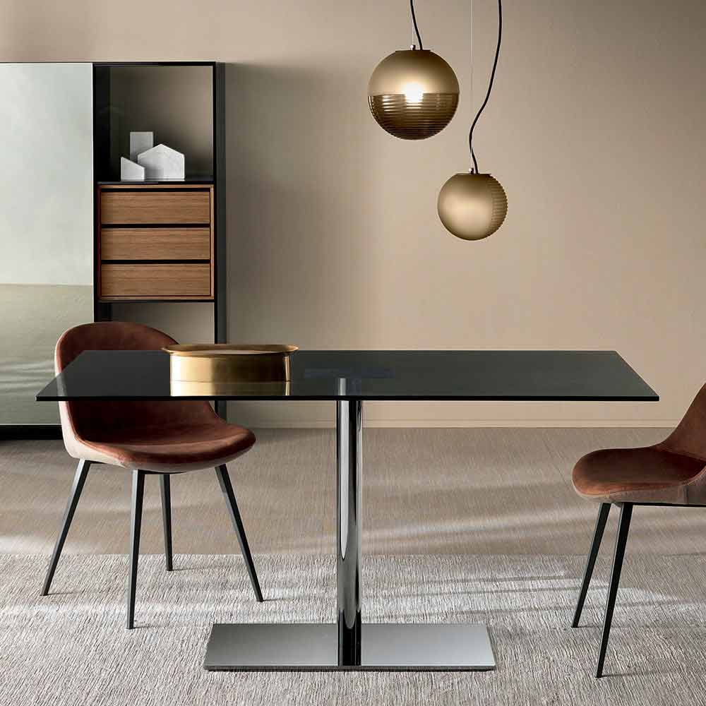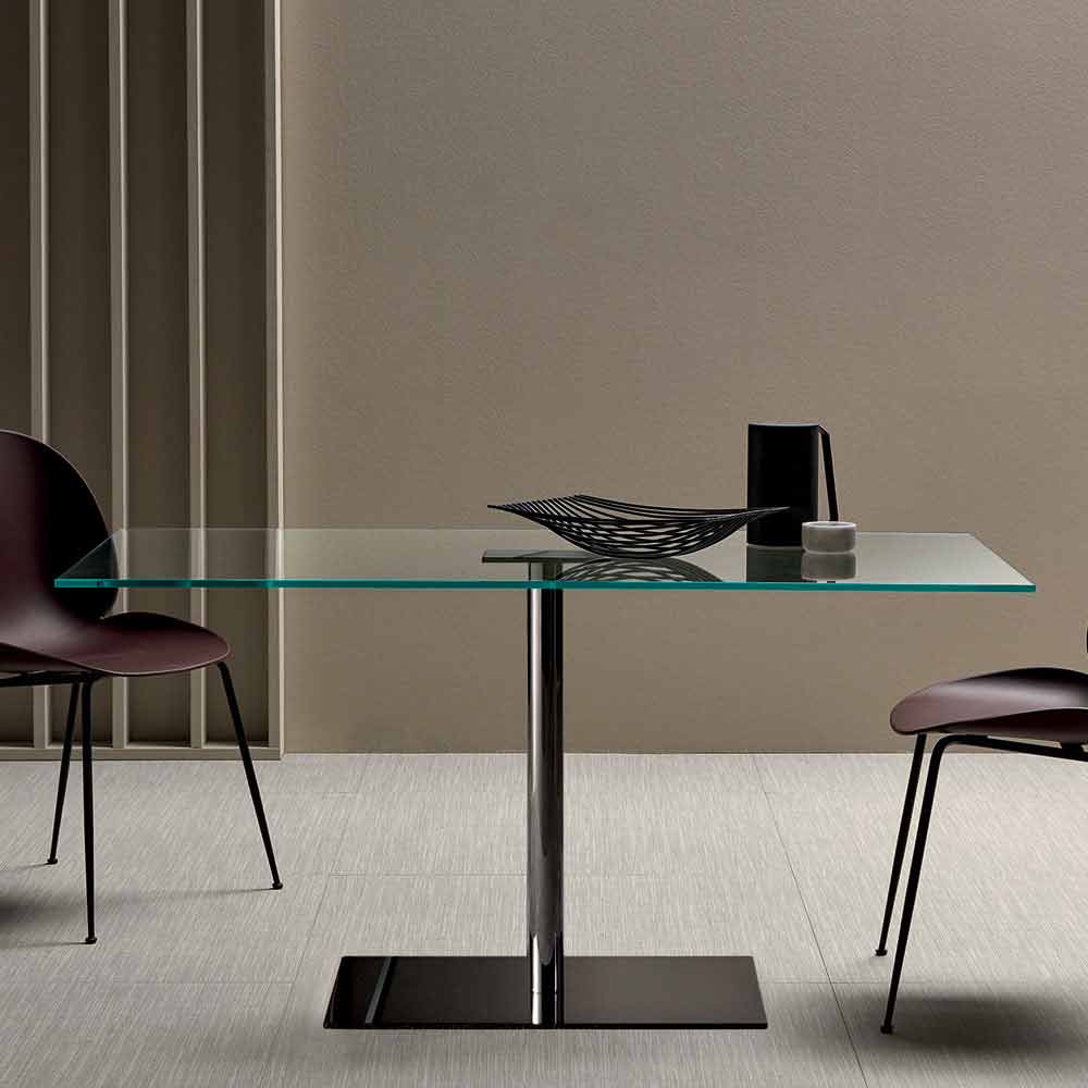 Table rectangulaire moderne en verre fumé ou extralight fabriqué en Italie - Dolce