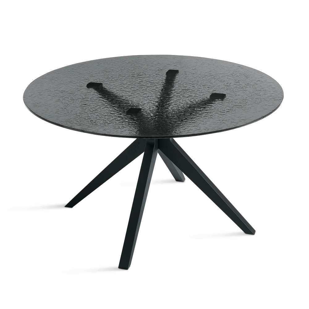 Le piètement en métal noir laqué assure stabilité et durabilité, et confère à la table une touche moderne et essentielle. L'alliance du verre décoré et de la structure métallique crée un équilibre parfait entre élégance et fonctionnalité, faisant de cette table un choix idéal pour les intérieurs traditionnels comme contemporains.