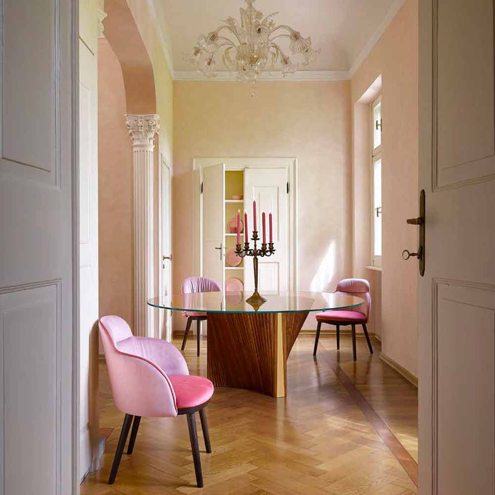 Table ronde de luxe en verre et frêne huilé Made in Italy - Madame