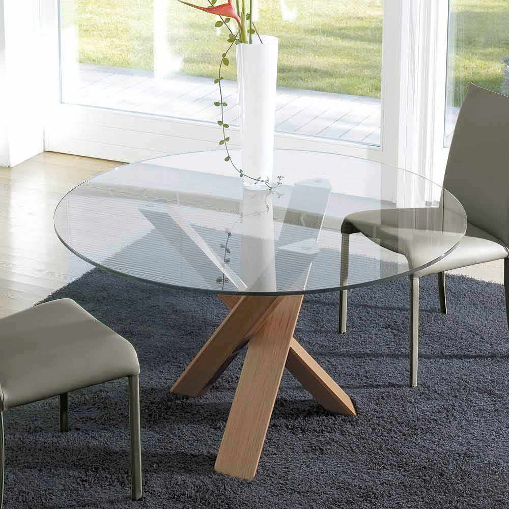 Table ronde design (d.160) avec plateau en cristal made in Italy, Cristal