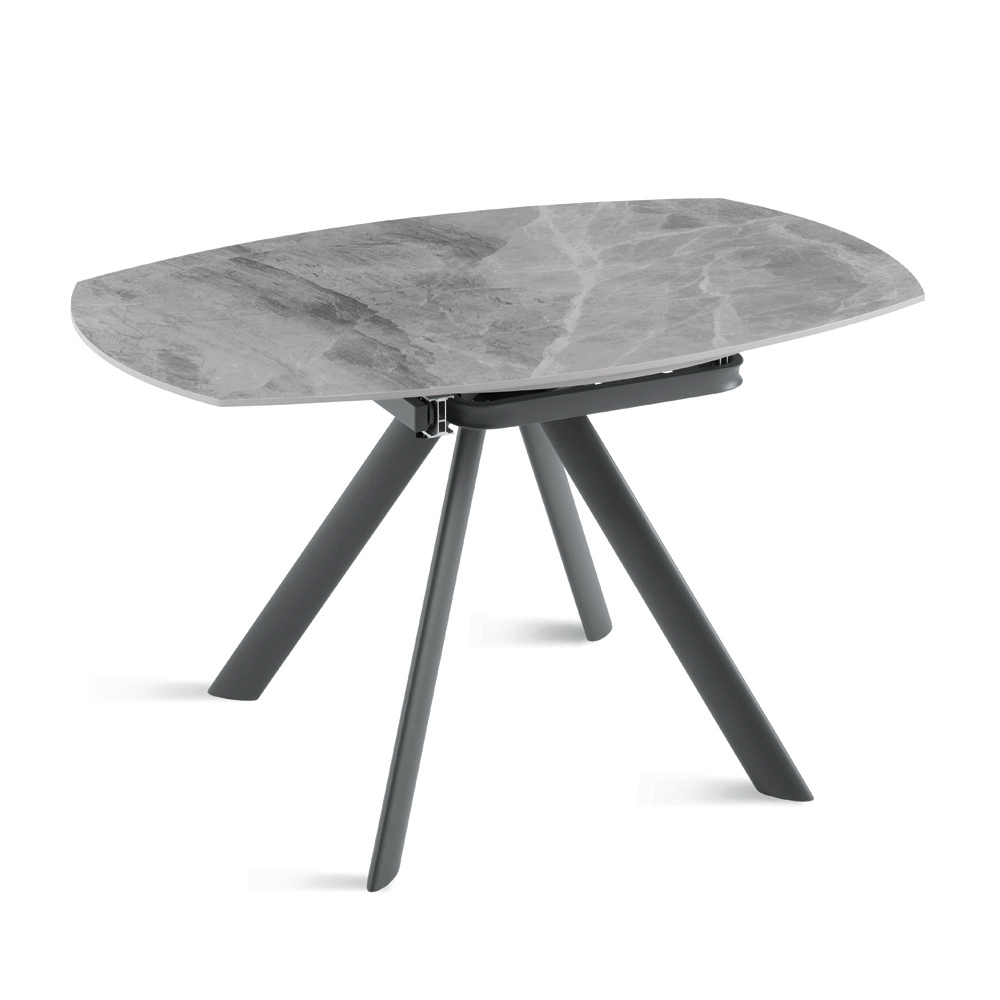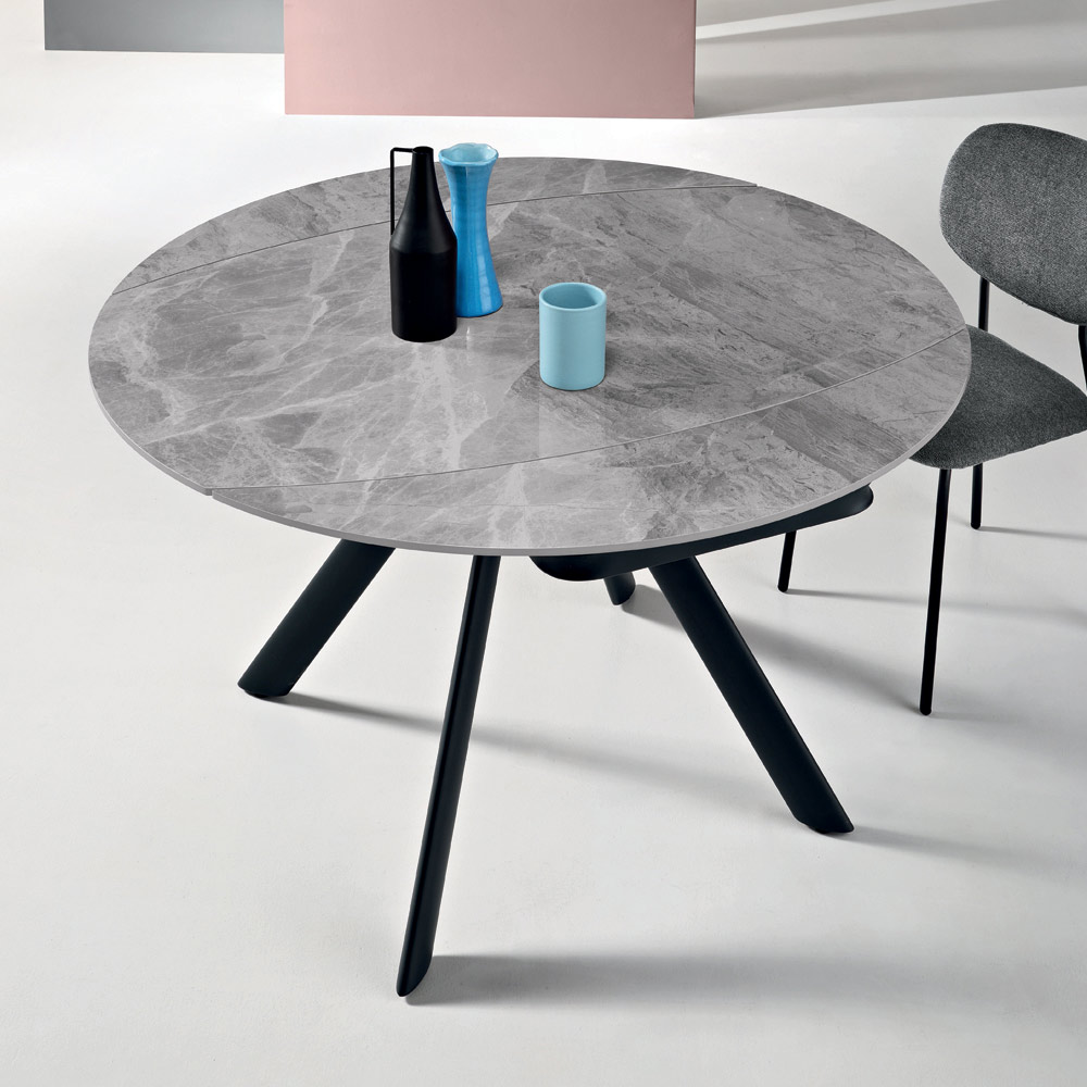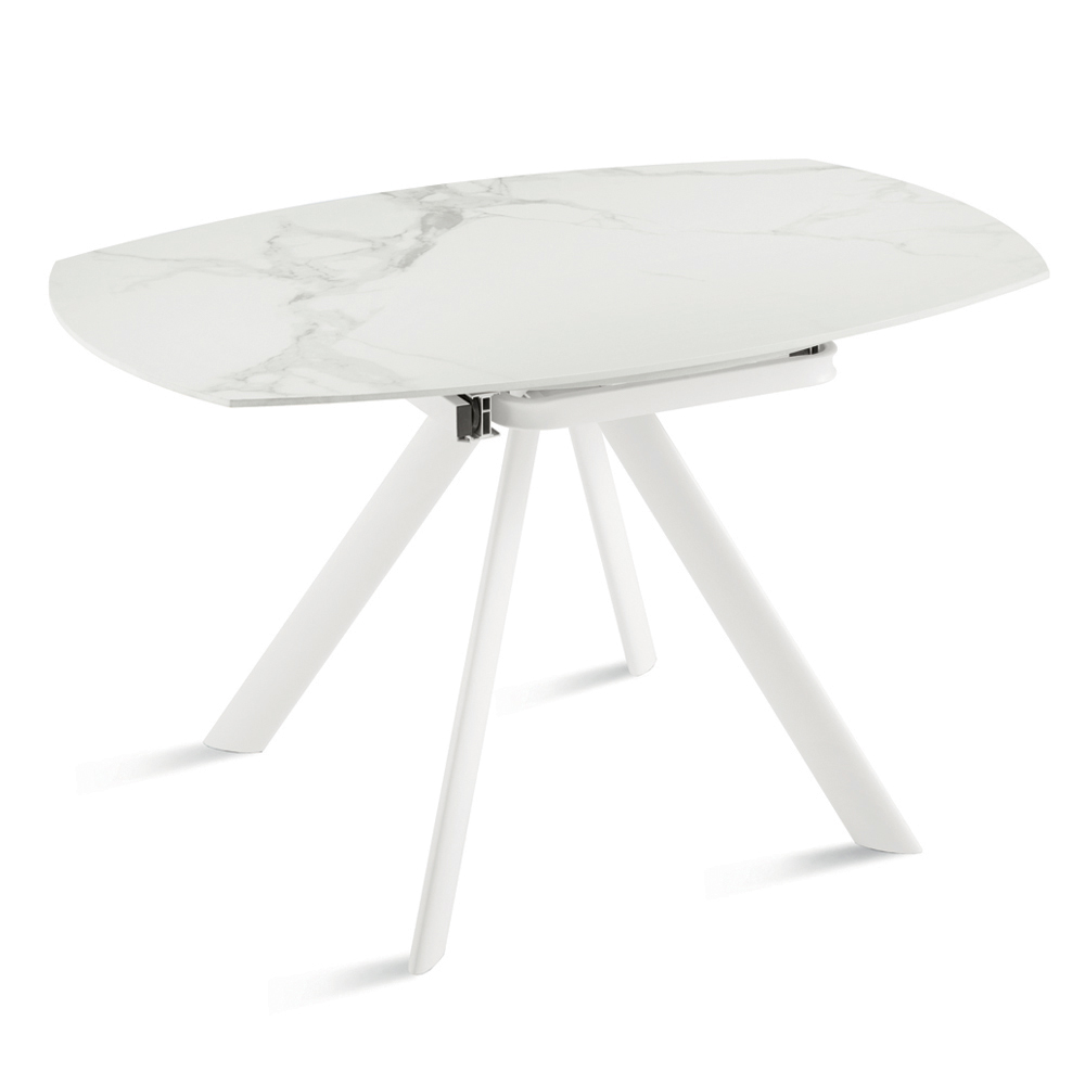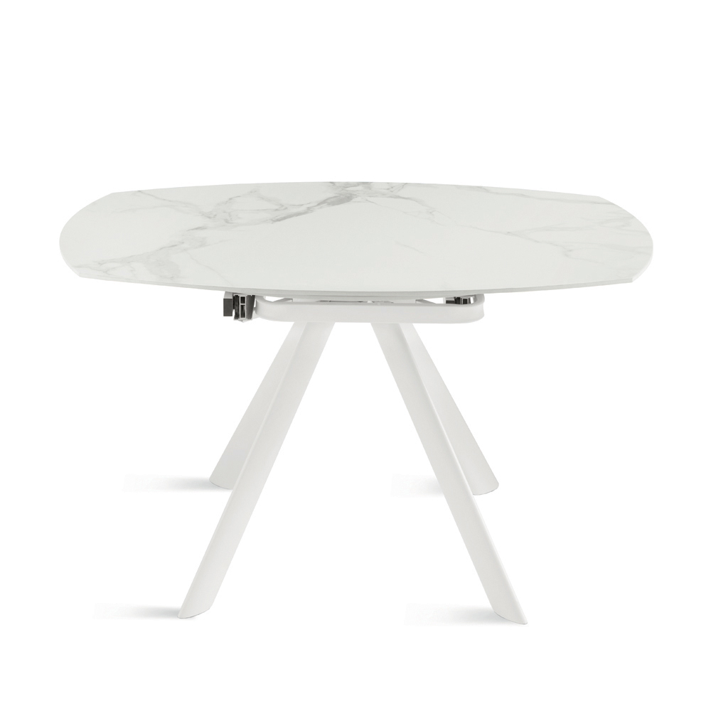 Élégante table de salle à manger extensible conçue pour aménager avec style votre salon ou votre salle à manger . Son plateau en pierre frittée effet marbre offre une surface durable, raffinée et facile d'entretien, idéale pour un usage quotidien.