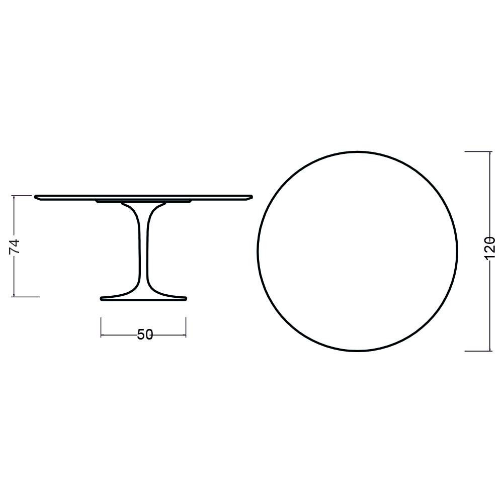 Table diamètre 120 x hauteur 74 cm / Base diamètre 50 cm