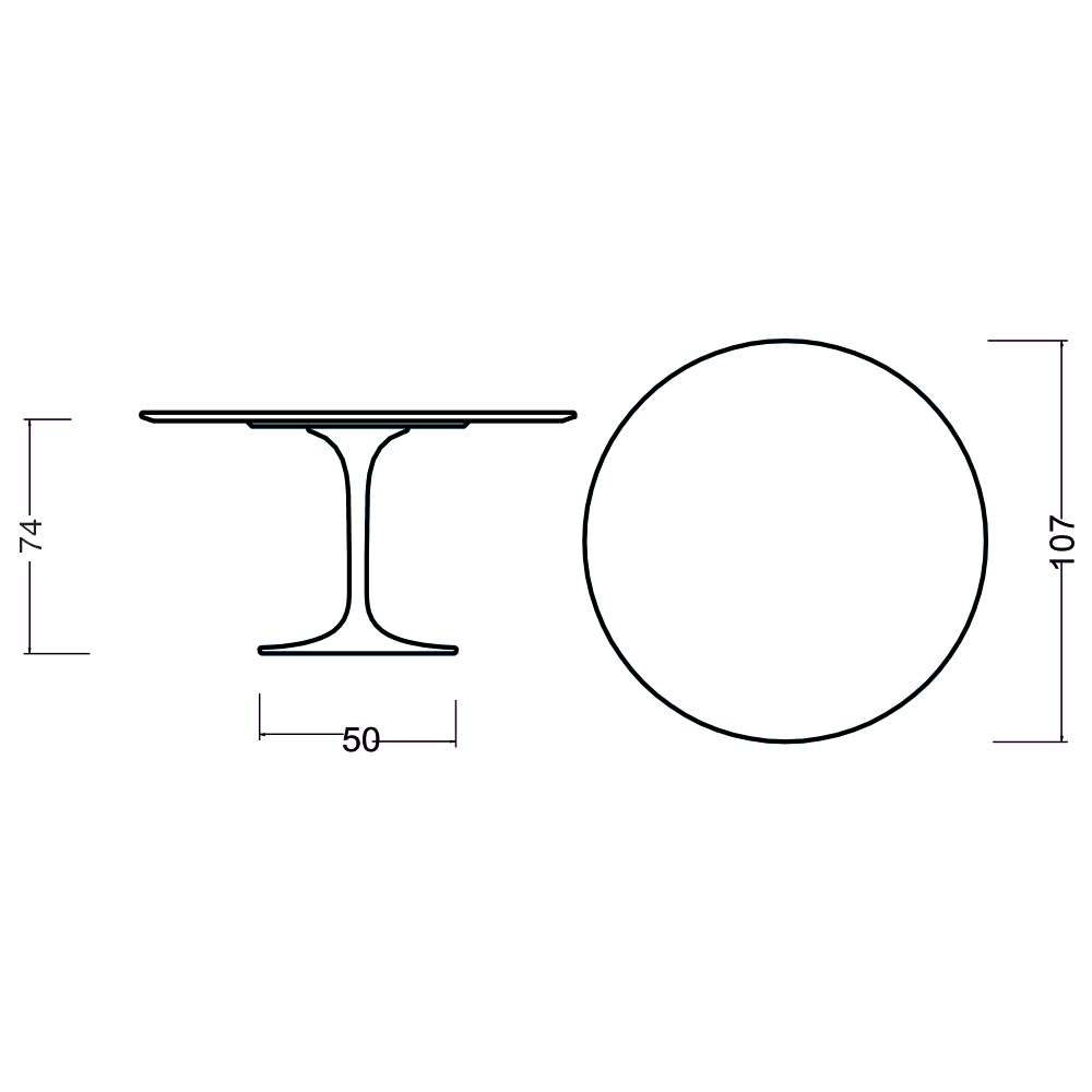 Table diamètre 137 x hauteur 74 cm / Diamètre du piètement 70 cm