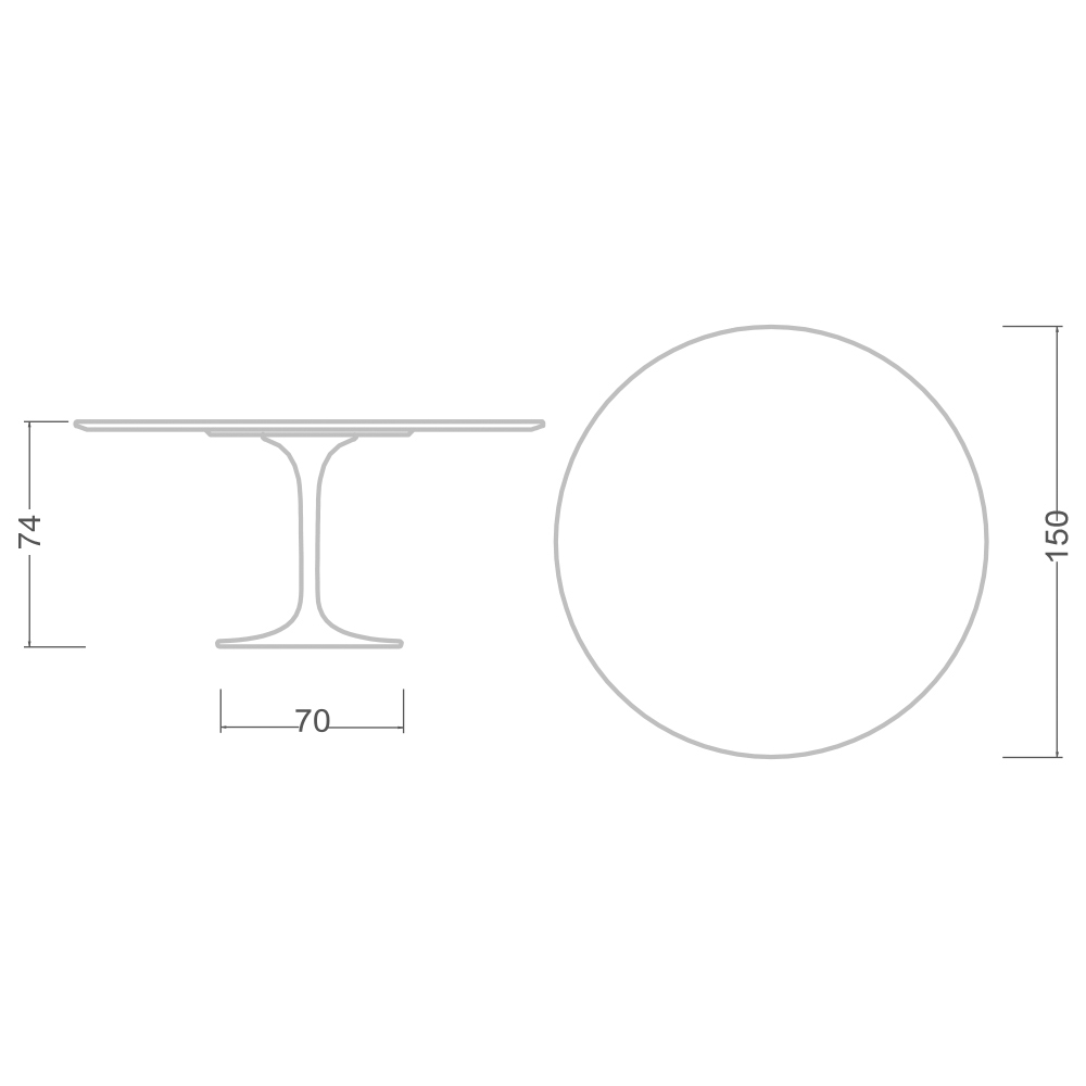 Diamètre du plateau 150 x H 73 cm / Diamètre du piètement 70 cm