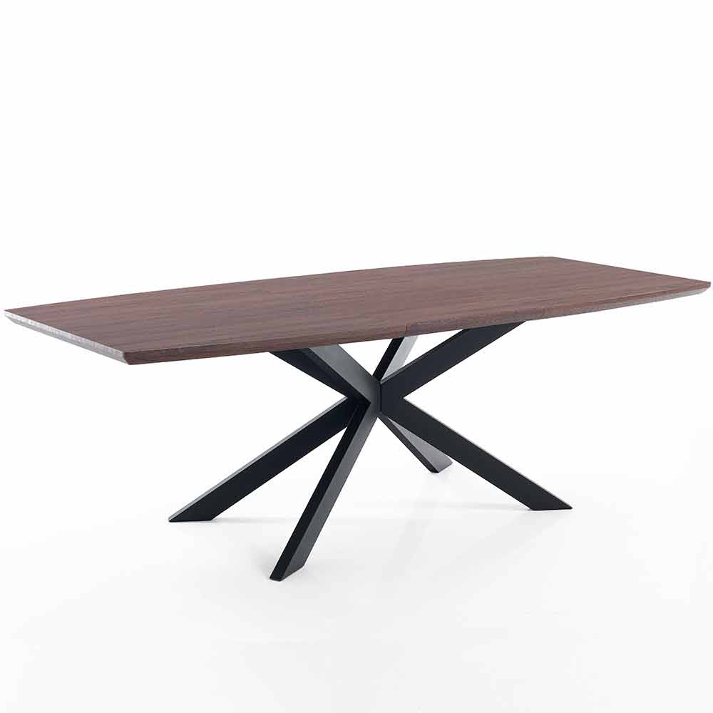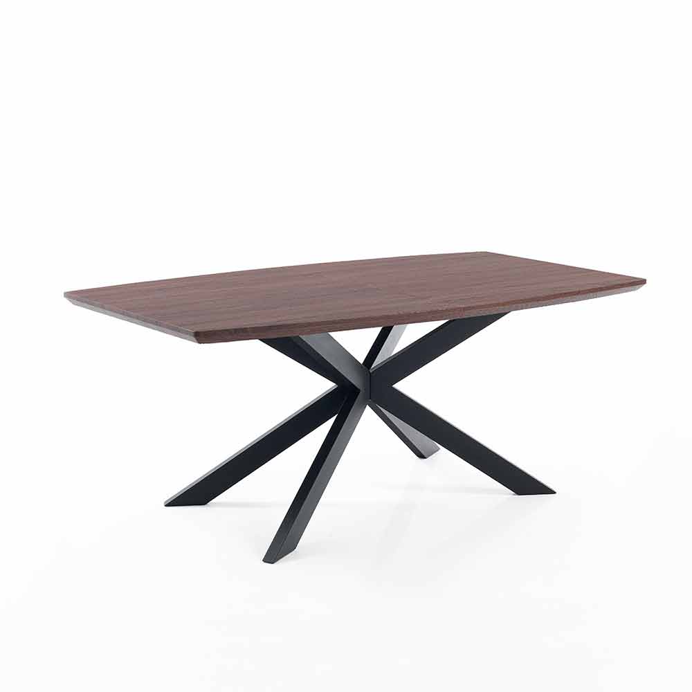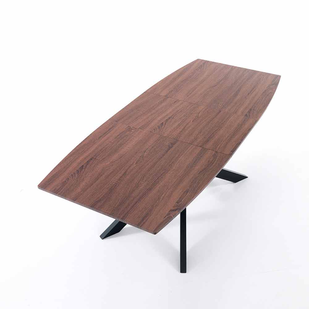 Torquato est une brillante table à manger à rallonges produite avec un plateau en mdf (épais 4cm) revetue de papier 3D finition noyer foncé et jambes en métal peint noir mat.