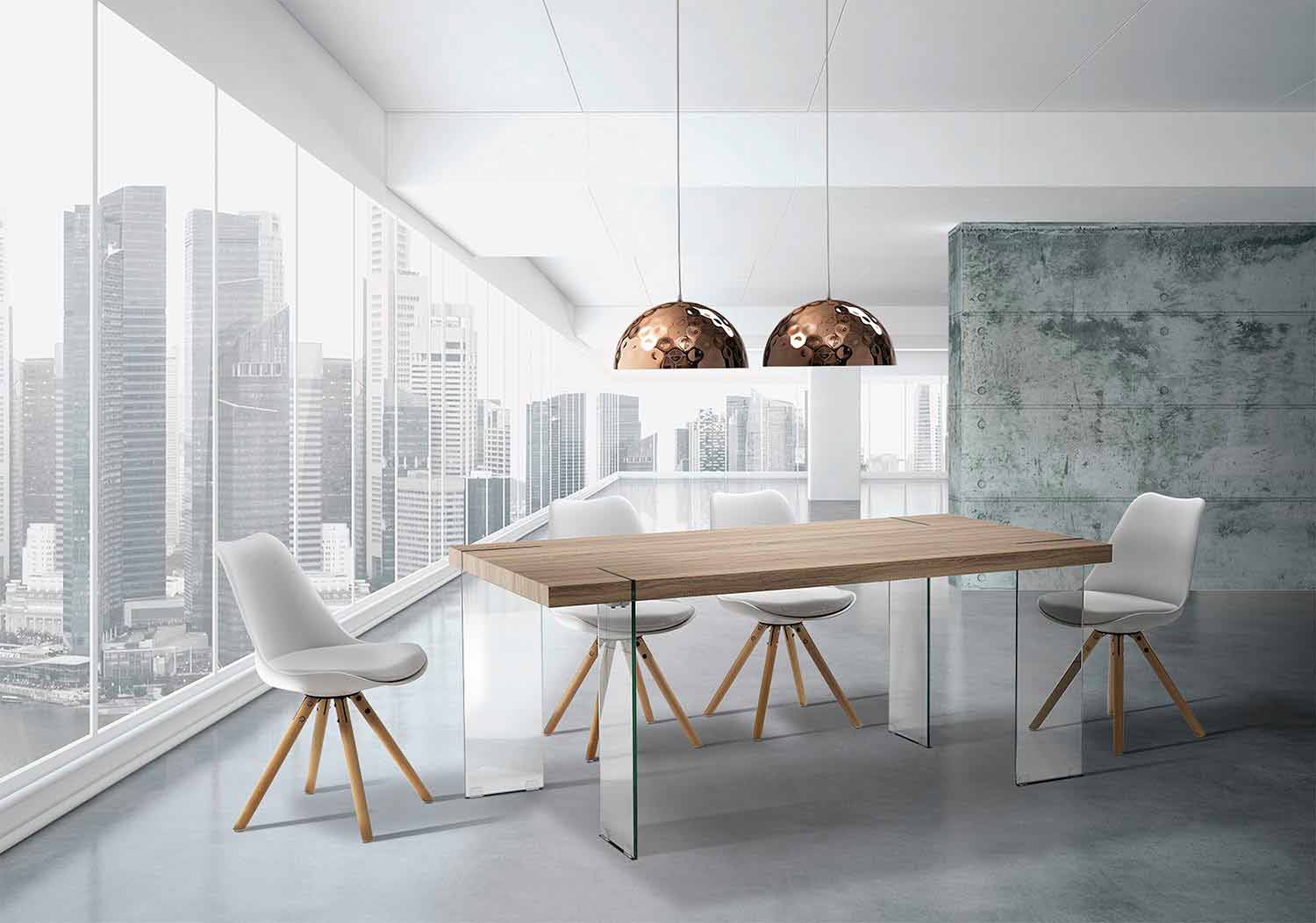 Table de Cuisine Moderne plateau en Mdf et Base en Verre - Joey
