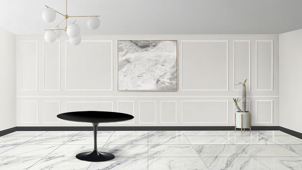 Eero Saarinen Tulip Table H 74 avec plateau MDF en stratifié liquide noir - Scarlet