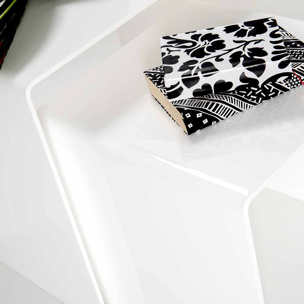 Fabriqué en Italie avec des matériaux de haute qualité tels que du plexiglas 100% polymère vierge PMMA, découpés au laser et cintrés à haute température. Disponible en différentes couleurs: - Blanc; - noir; - rouge transparent; - fumé transparent; - multicolore; - transparent