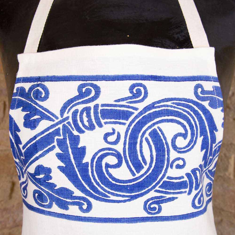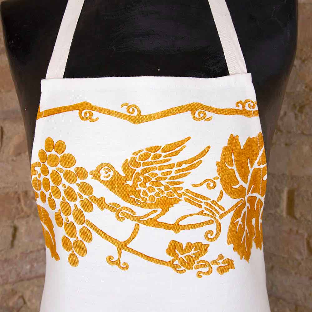 Tablier de cuisine avec bavette et poches de haute qualité en pur lin avec un dessin d'art ancien imprimé à la main, disponible en trois variantes, pièce unique de qualité italienne.