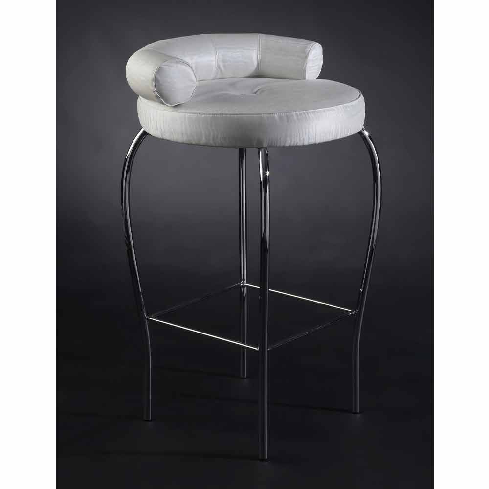 Tabouret haut en acier avec assise recouverte de précieux tissu Made in Italy.