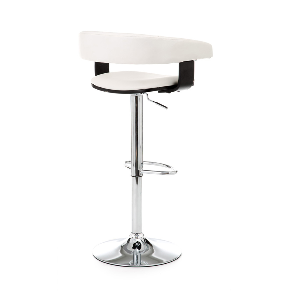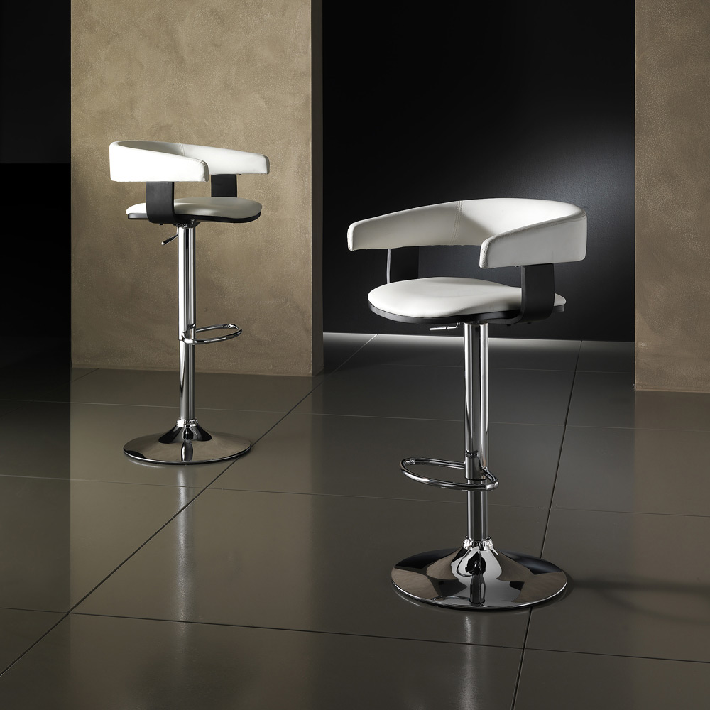 Tabouret réalisé avec assise et dossier recouverts de cuir synthétique, structure en métal chromé et vérin à gaz réglable en hauteur, entièrement . Cet article au style moderne et élégant présente des lignes simples qui le rendent parfait pour compléter l'ameublement des espaces de vie, comme les cuisines et les salons, mais aussi des espaces contract, comme les bars et les bureaux. Des matériaux d'excellente qualité ont été choisis pour garantir une assise confortable et confortable, mettant en valeur le savoir-faire du.